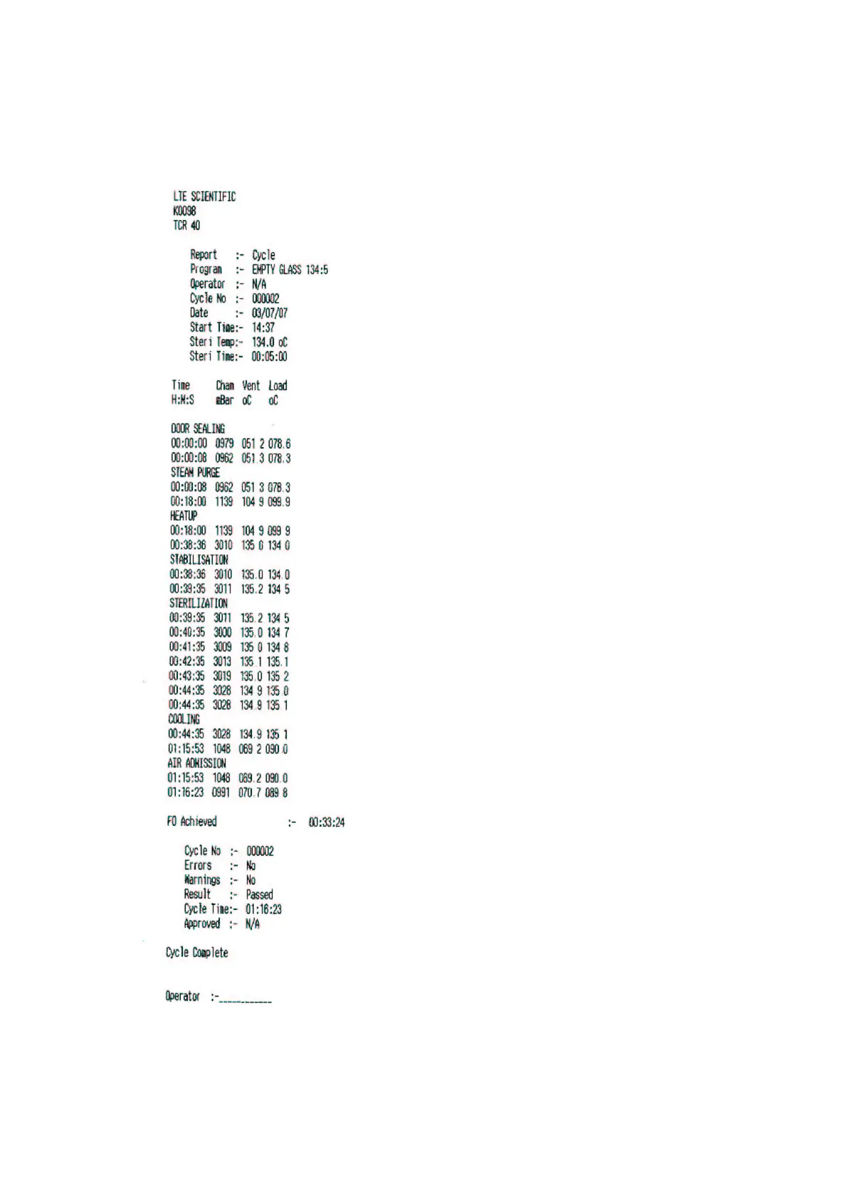 LTE TOUCHCLAVE-R - 5.6 Sample Cycle Printout