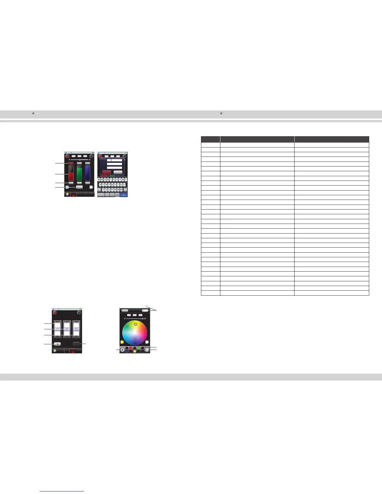 Tables of RGB Driver Style interface Changing mode: