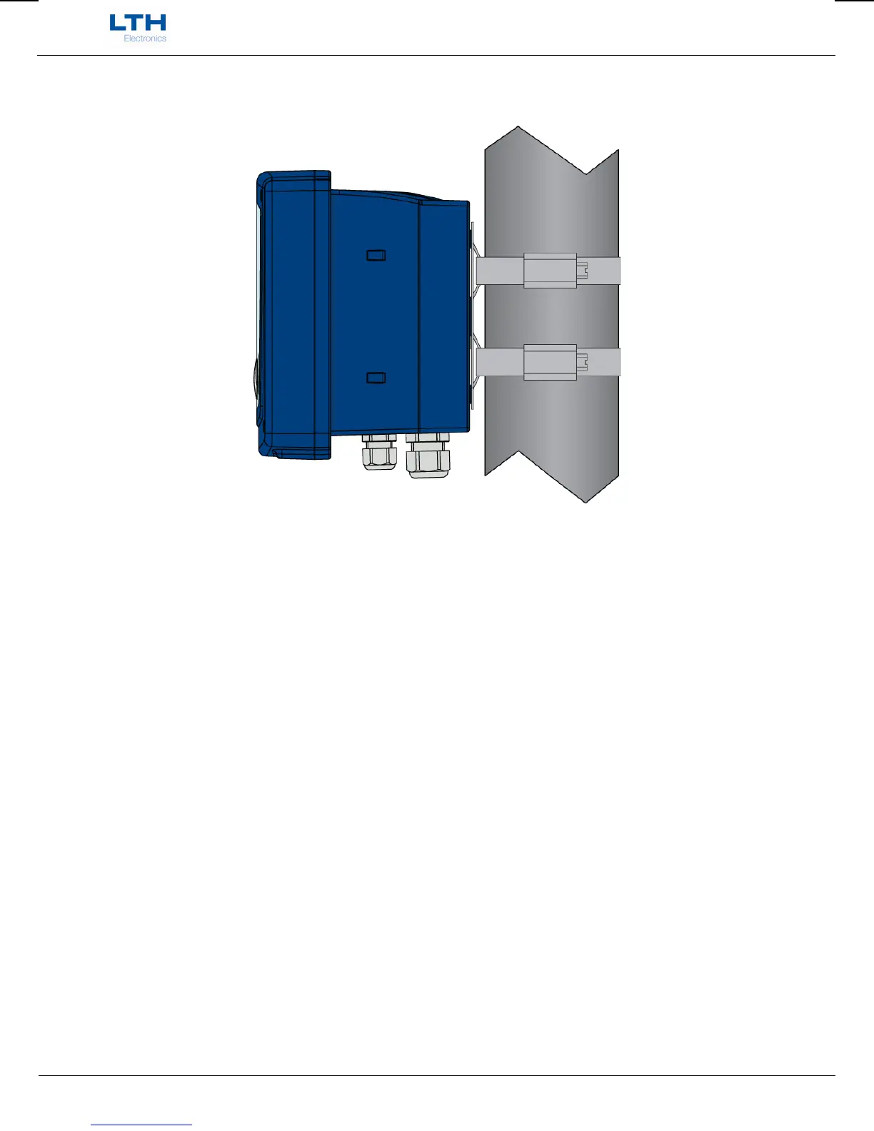 Pass supplied mounting straps through plate loops and tighten round pipe as required.