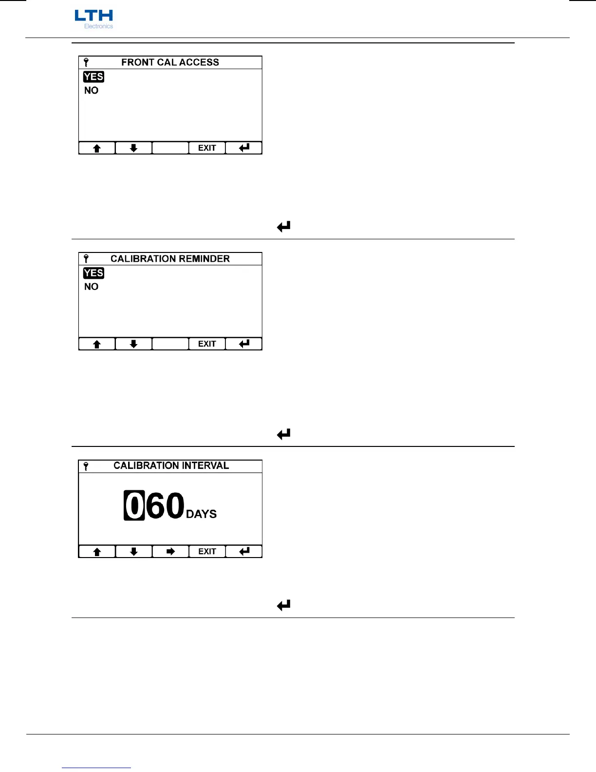 entry into the calibration menu from the front screen