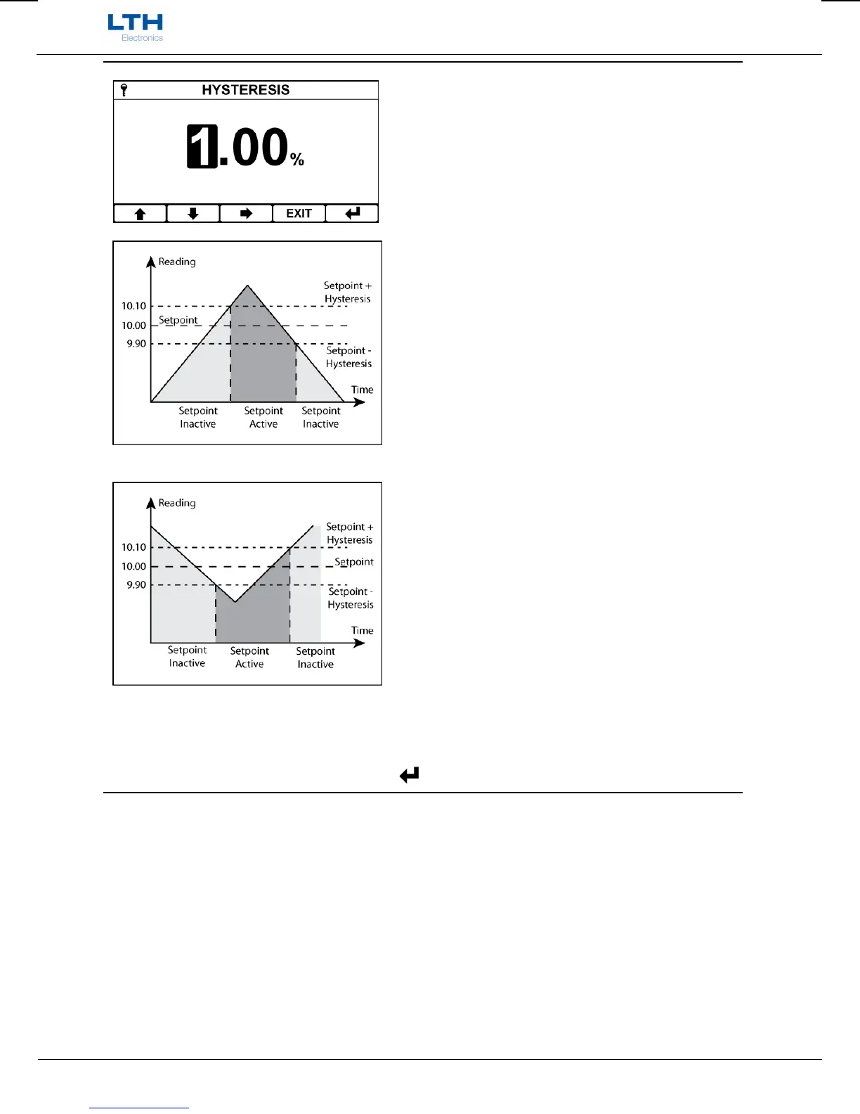 example, if the setpoint was 10.00 and the Hysteresis