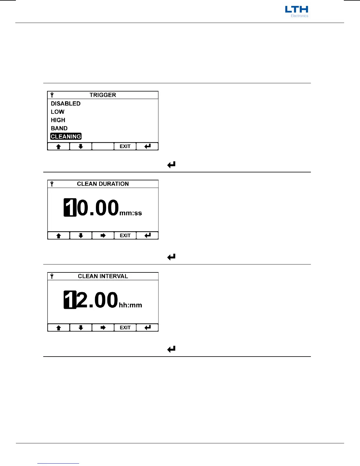 Enter the time between cleaning operations.