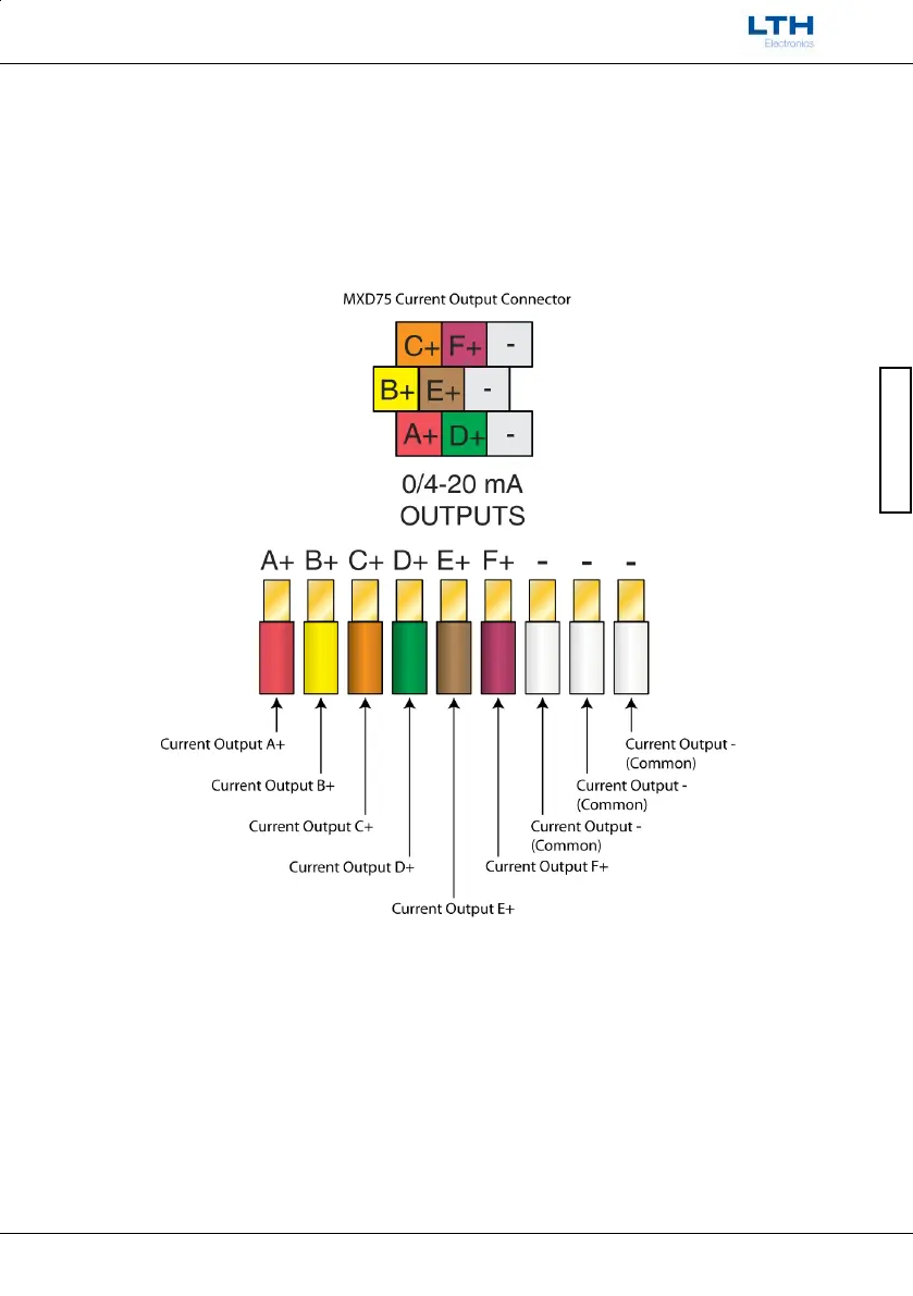 The MXD75 can be supplied with up to 6 current outputs designated A to F, which can