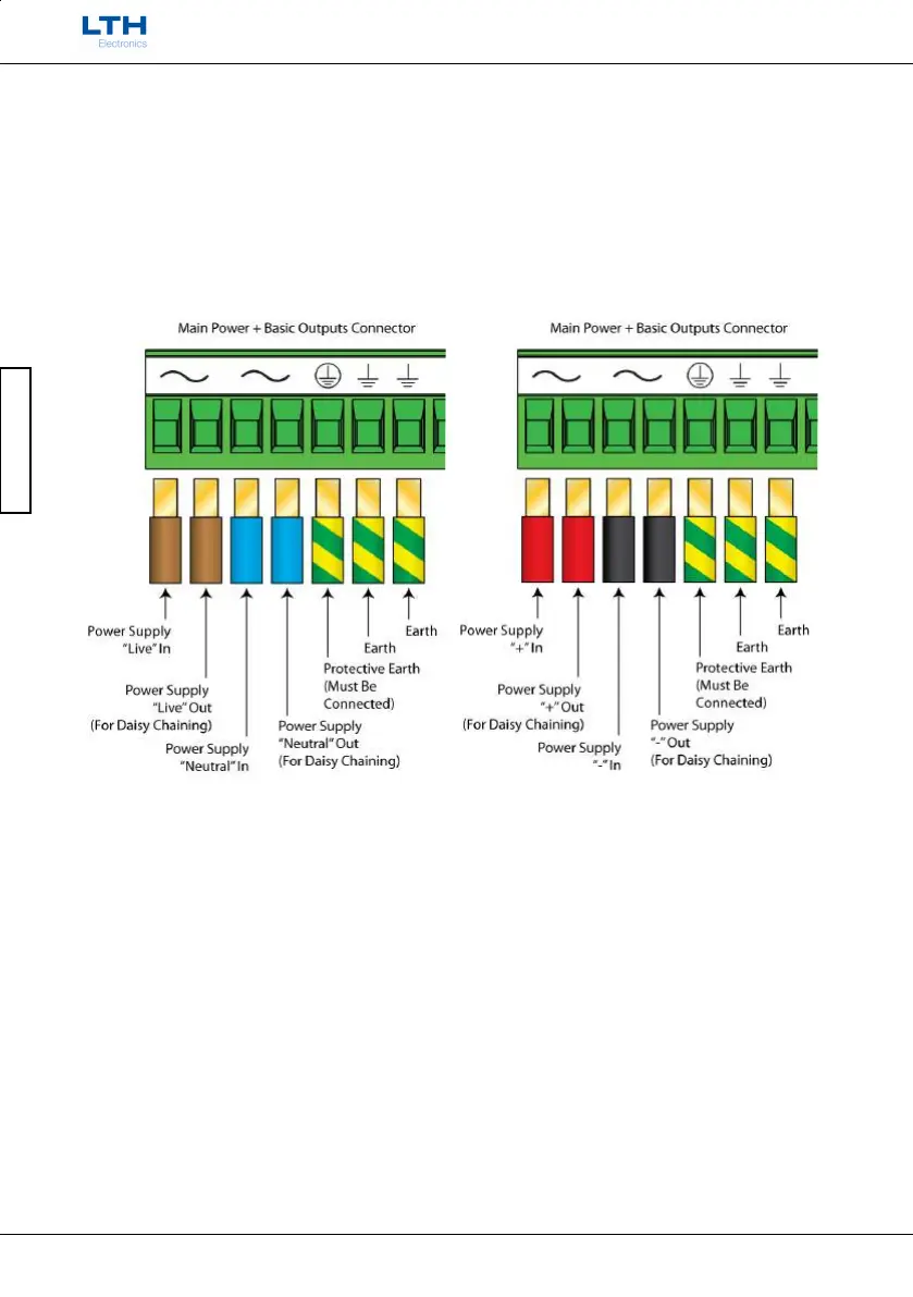DC Input), plus an “Earth” terminal. This allows the supply to be “daisy chained” to the relay
