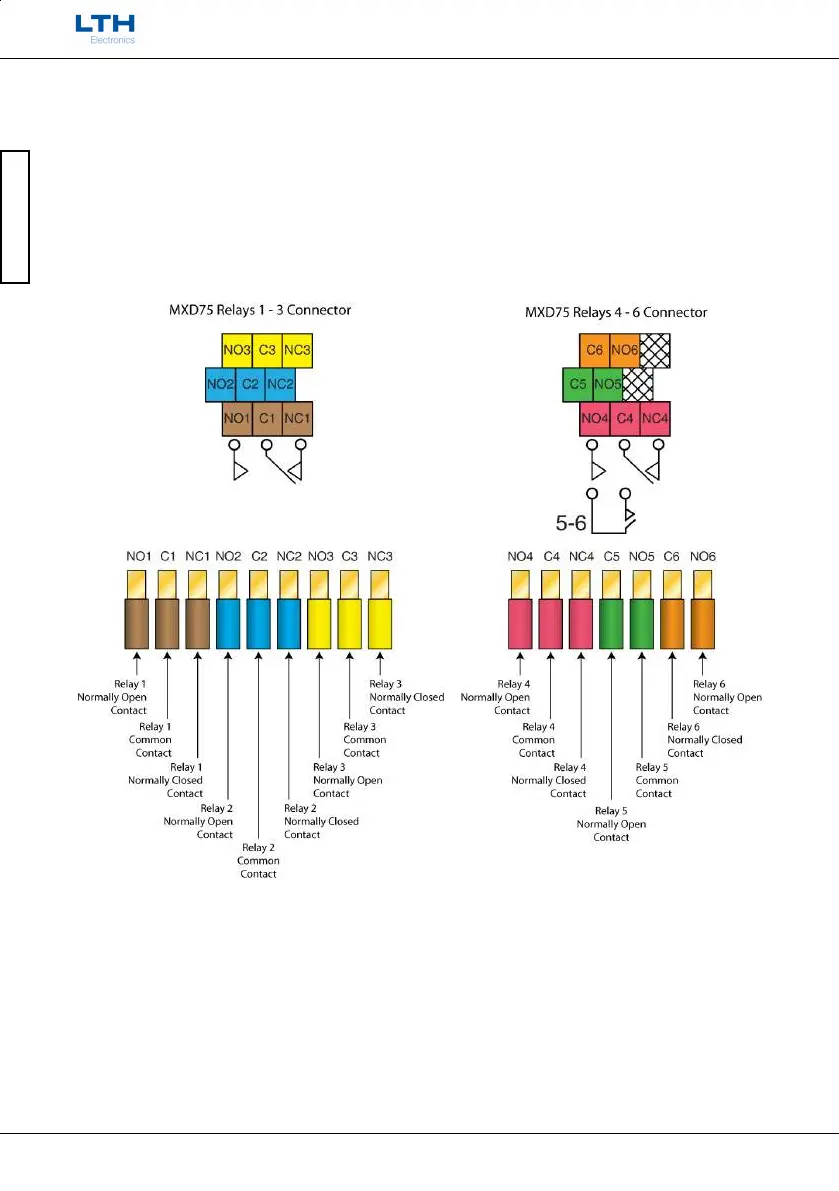 The MXD75 can be supplied with up to 6 relays designated 1 to 6, 1 to 4 are change over