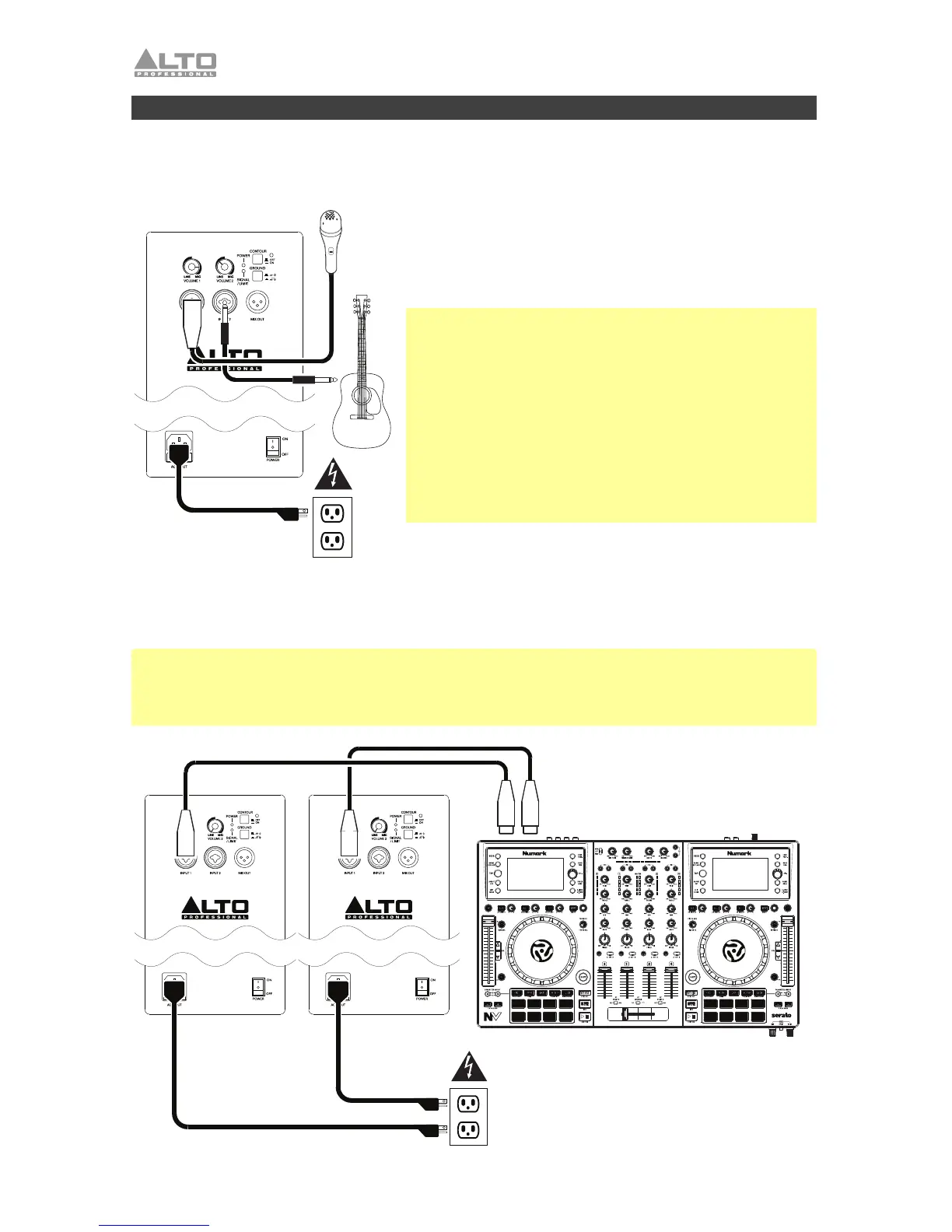 DJ mixer, controller, etc. to the Input 1 and Input 2 of one loudspeaker, and then connect that