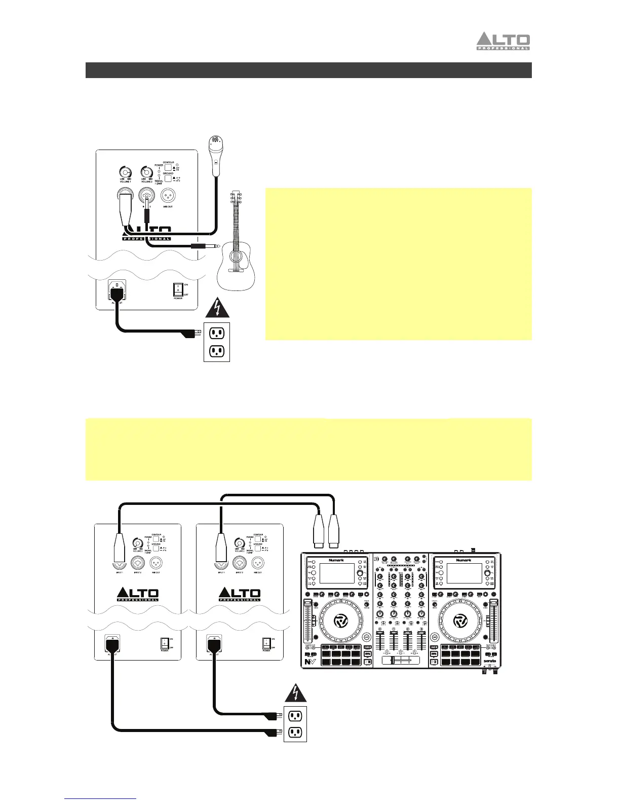 canales de su mezclador de DJ, controlador, etc. a las entradas 1 y 2 de un altavoz, y a