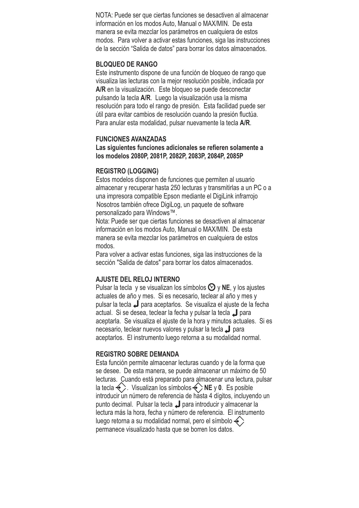 resolución para todo el rango de presión. Esta facilidad puede ser