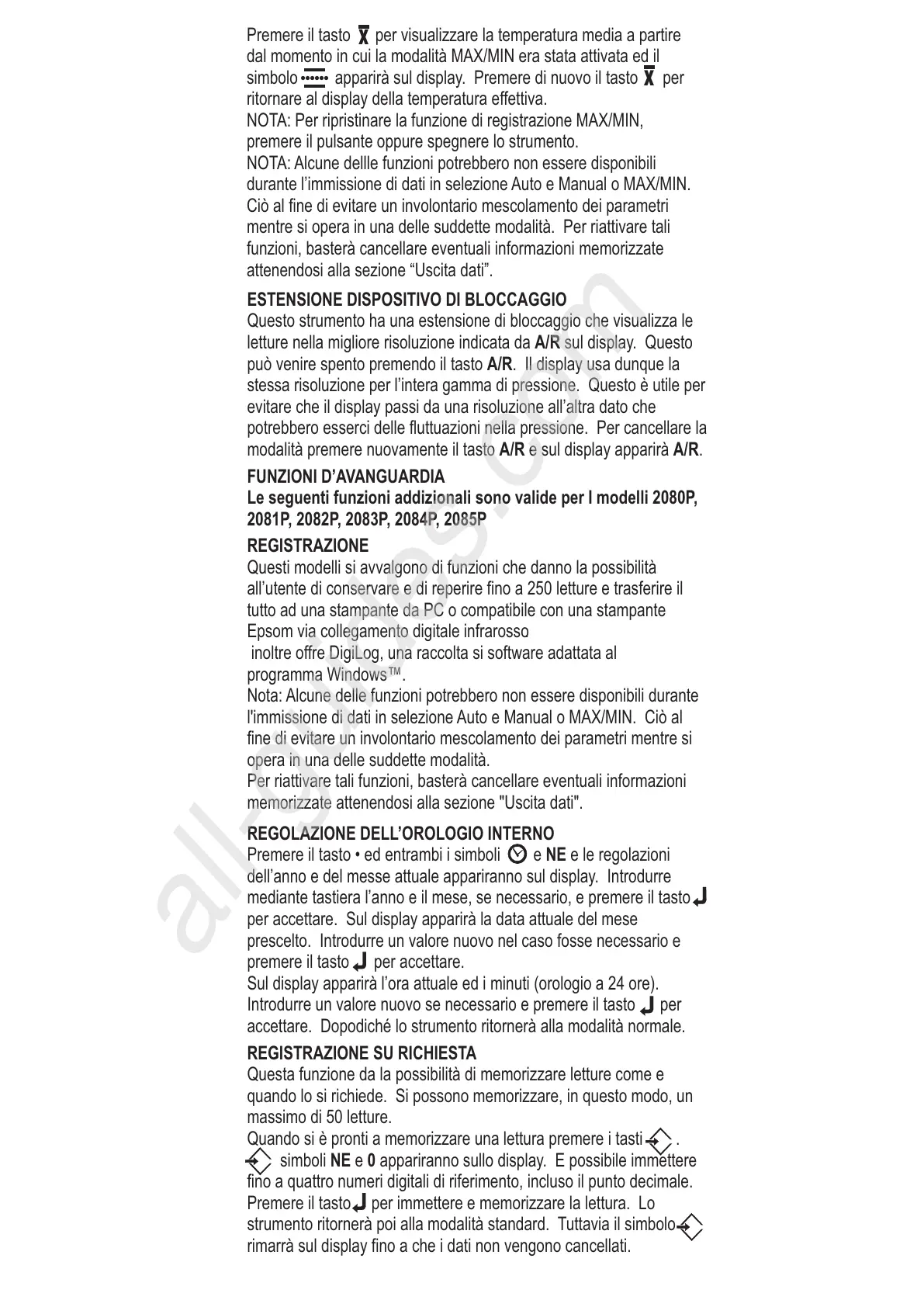 Le seguenti funzioni addizionali sono valide per I modelli 2080P,