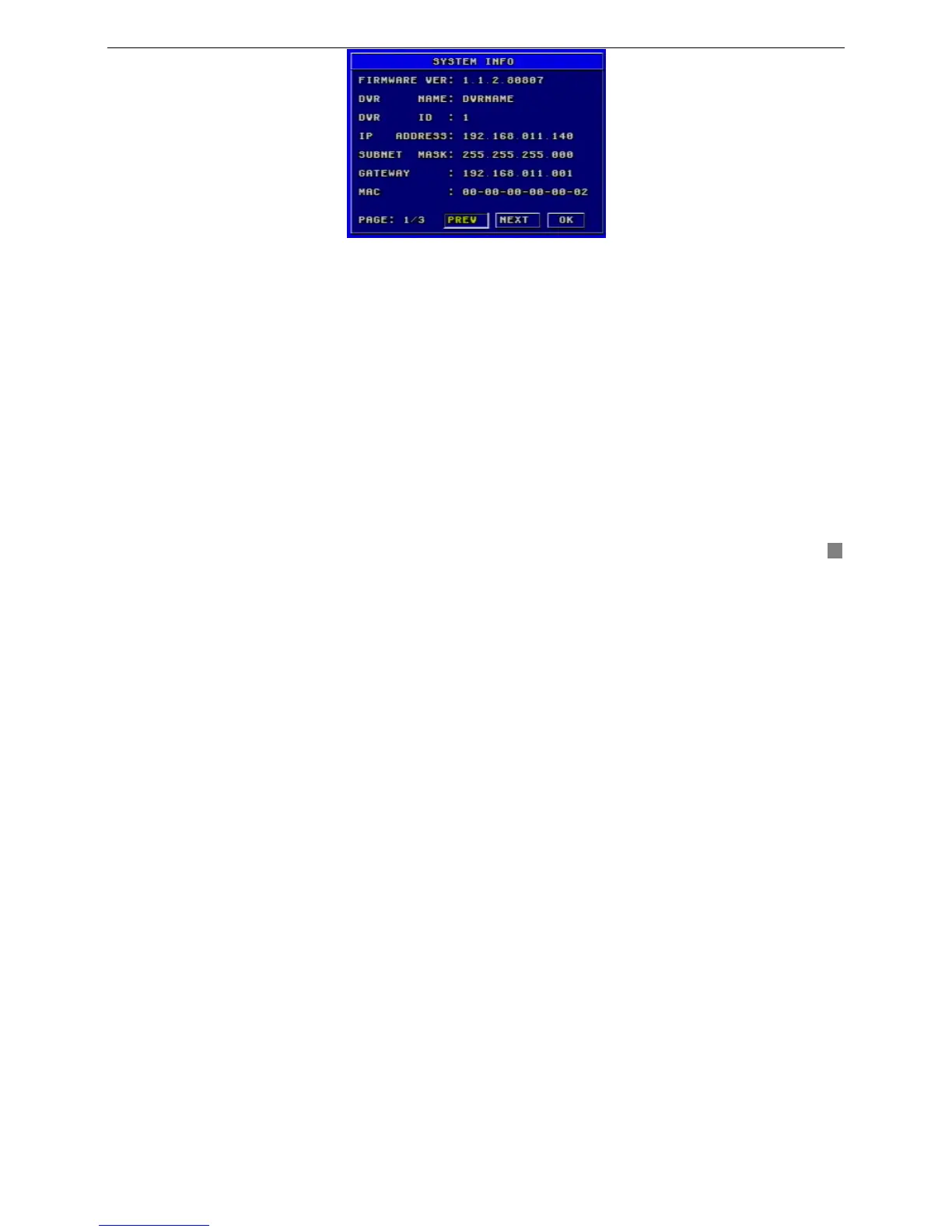 version, device name, DVR IP ADDRESS, Client information and so on.