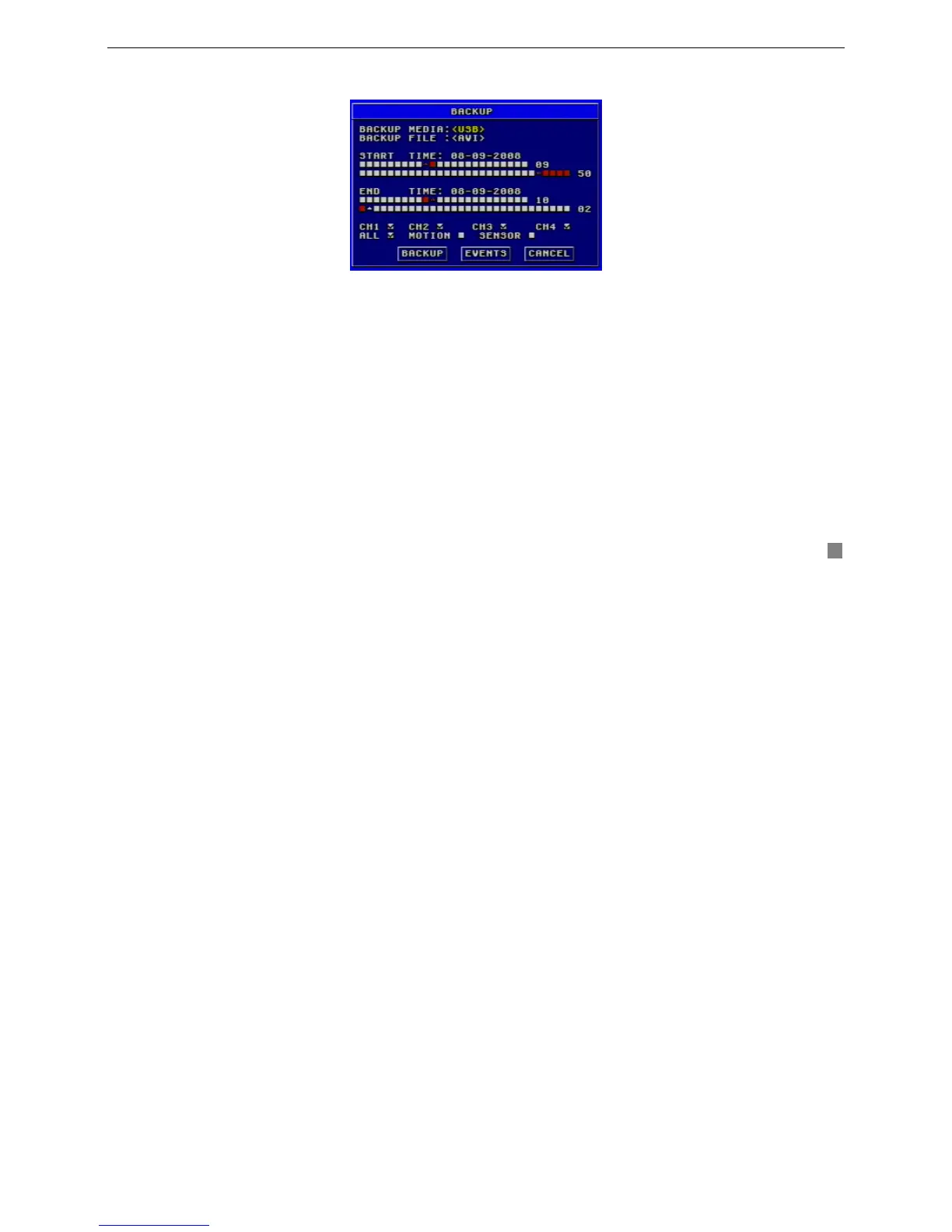 It denotes the format of backup files. This system supports AVI and DAT video formats.