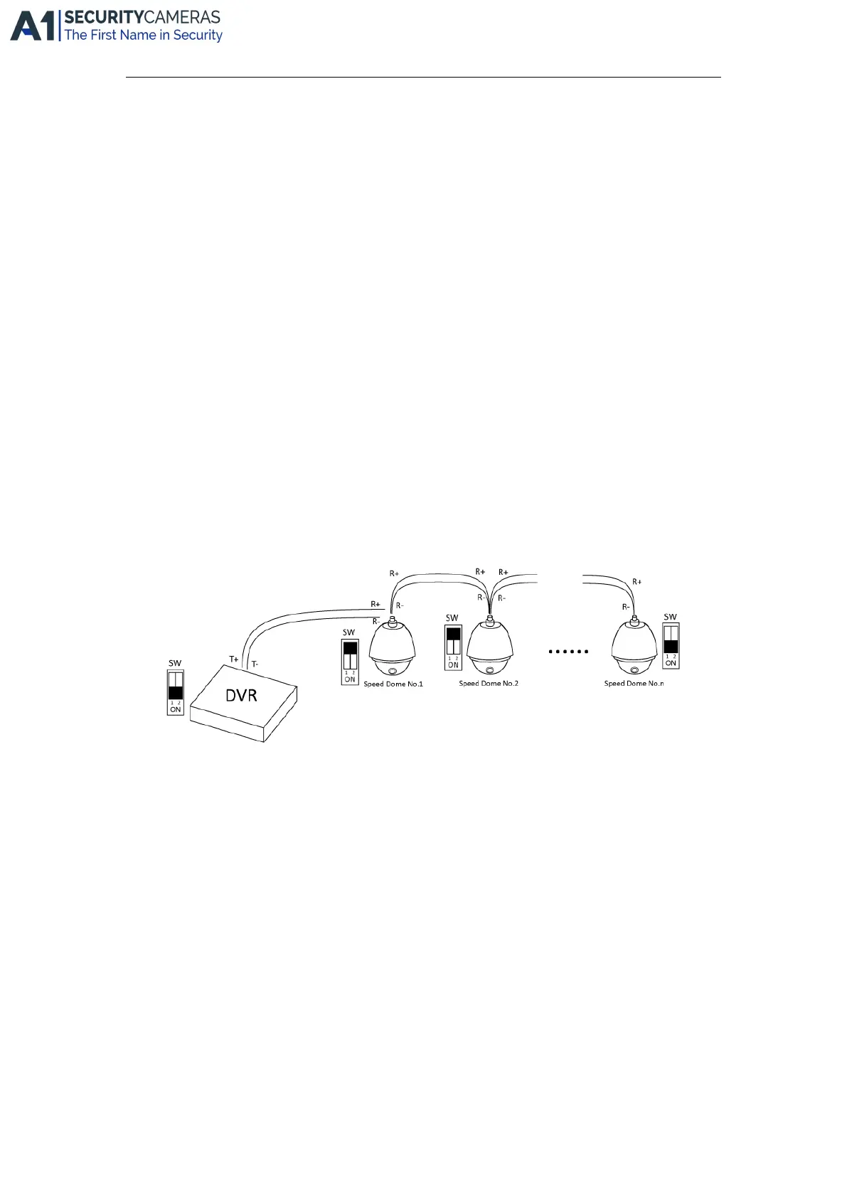 To connect the DVR with several speed domes, the bus topology can be adopted, which means the speed domes