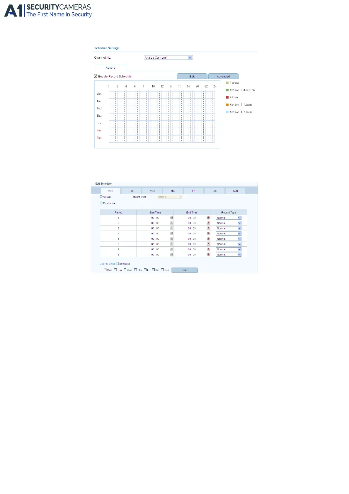 If you want to configure the all-day recording, please check the All Day checkbox.