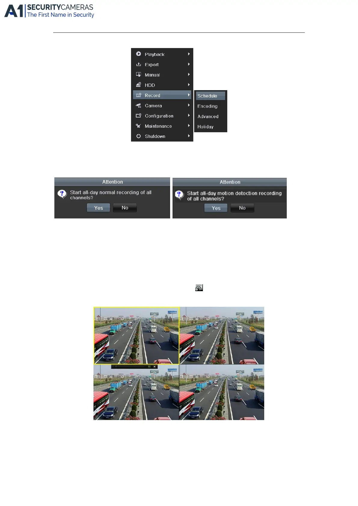 3. In the pop-up message box, click Yes to finish the quick recording settings for all channels.