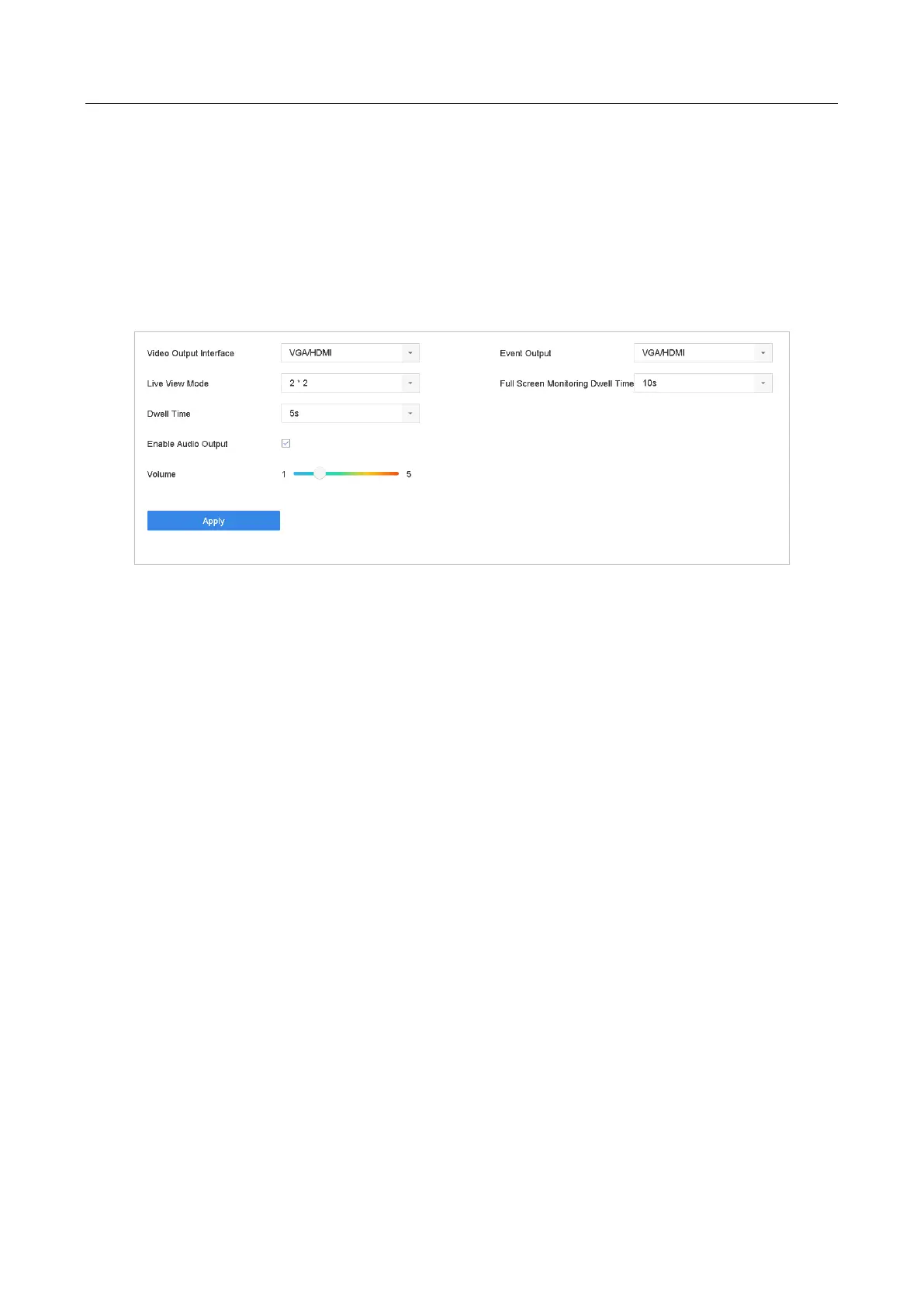 Volume: Adjust the volume of live view, playback and two-way audio for the selected output
