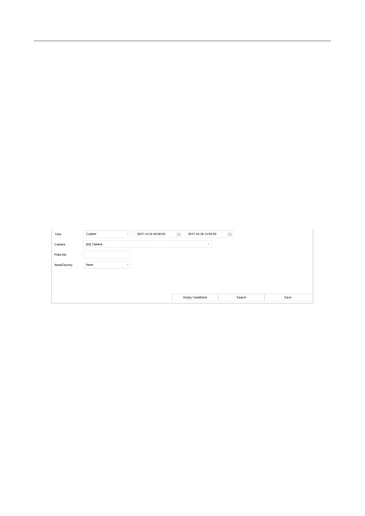 Step 2 Specify detailed conditions, including Time, Camera, Plate No., and Area/Country.