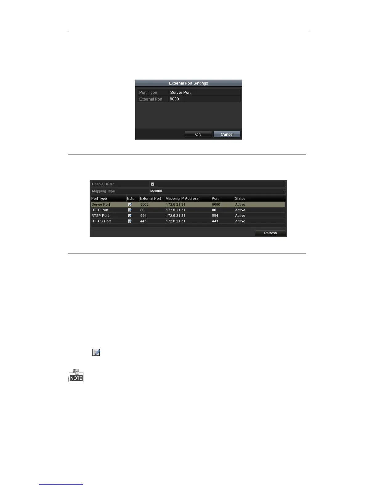 4. Click to activate the External Port Settings dialog box. Configure the external port No. for server port,