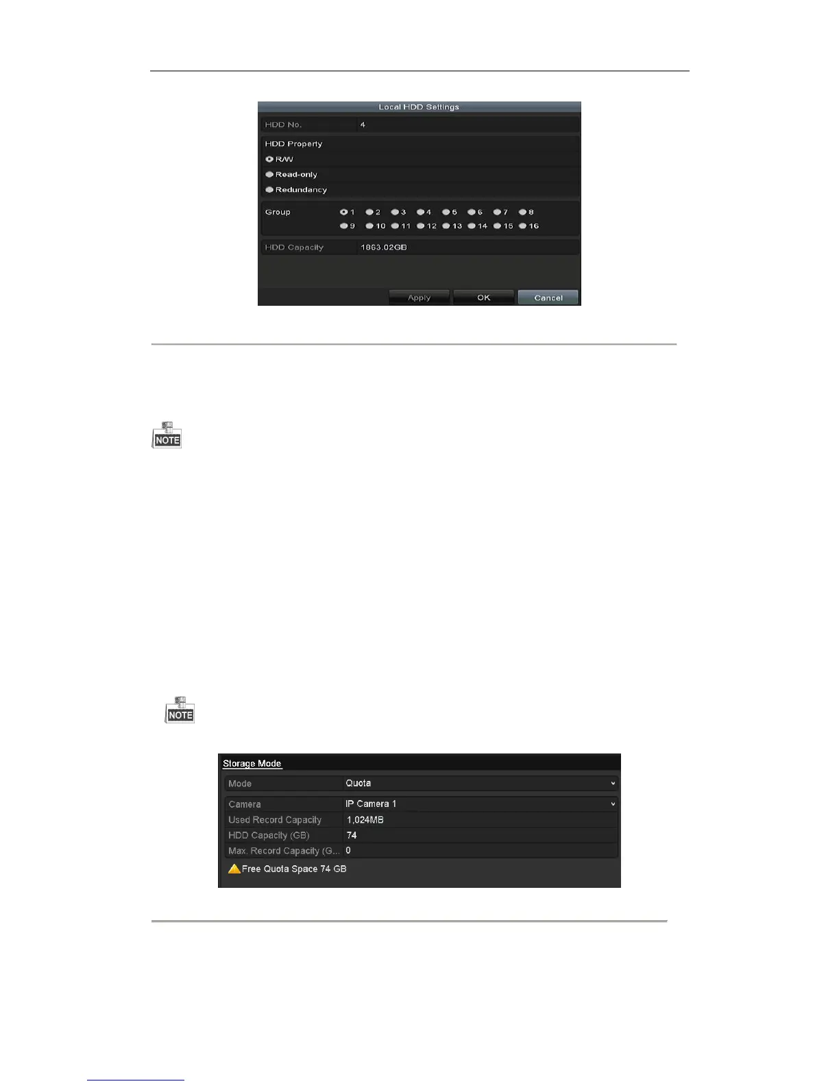 4. Enter the storage capacity in the text fields of Max. Record Capacity (GB) and Max. Picture Capacity (GB),