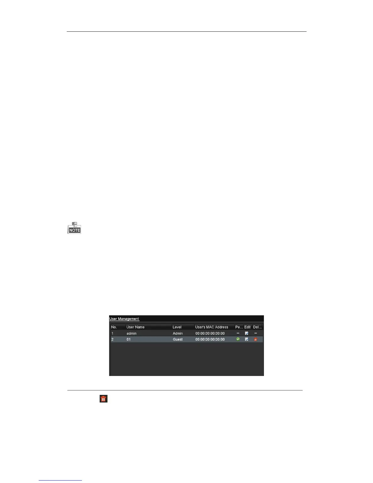3. Click the icon to delete the selected user account.