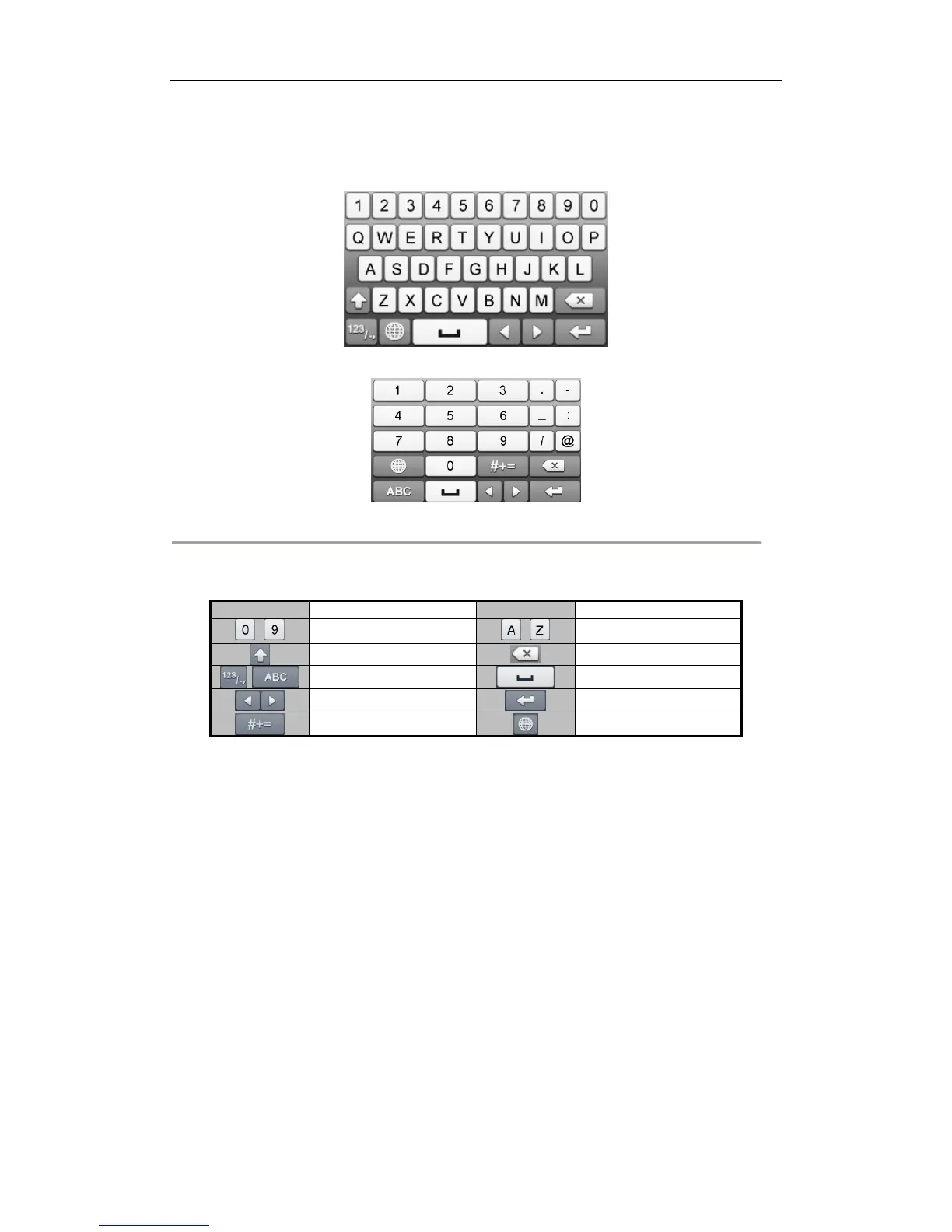 Description of the buttons on the soft keyboard: