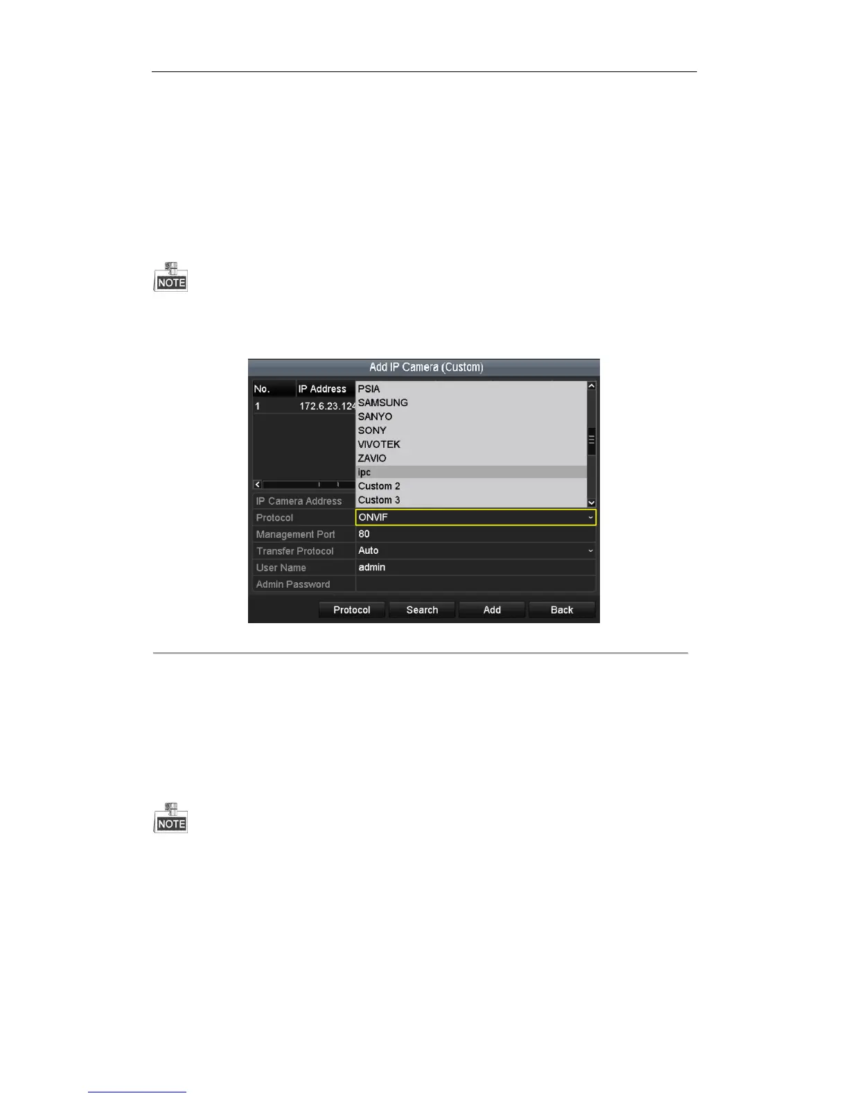 The protocol type and the transfer protocols must be supported by the connected network camera.