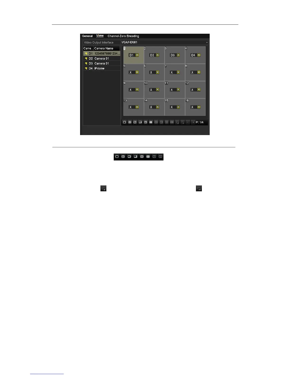 1) Select a View mode in , including 1/4/6/8/16/25/32/36/64-window