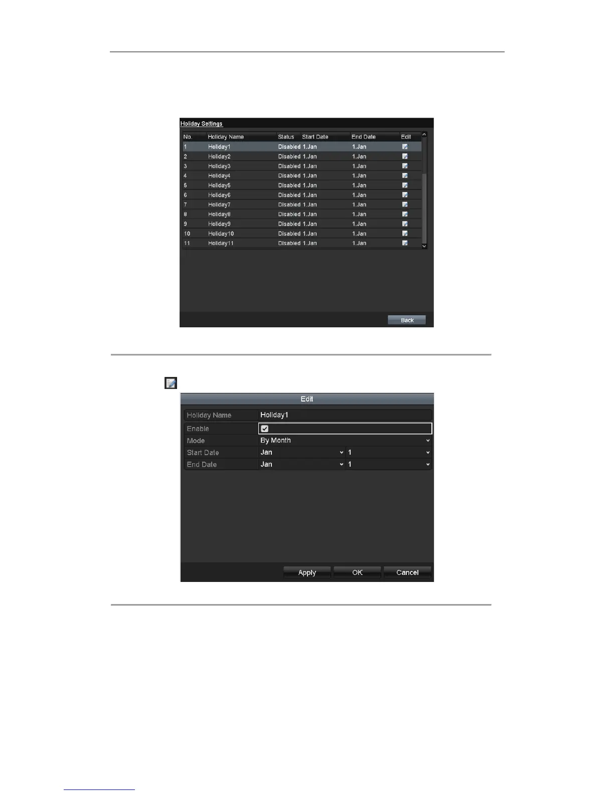 3. Enter Record/Capture Schedule settings interface to edit the holiday recording schedule. See Chapter 6.2