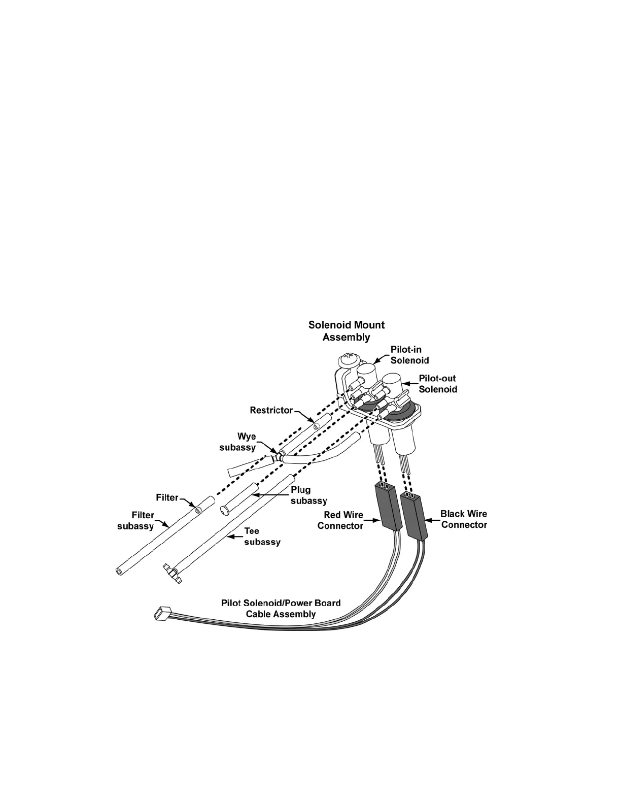 • attach the Pilot Solenoid/Power Board Cable assembly P/N 18530-001, two