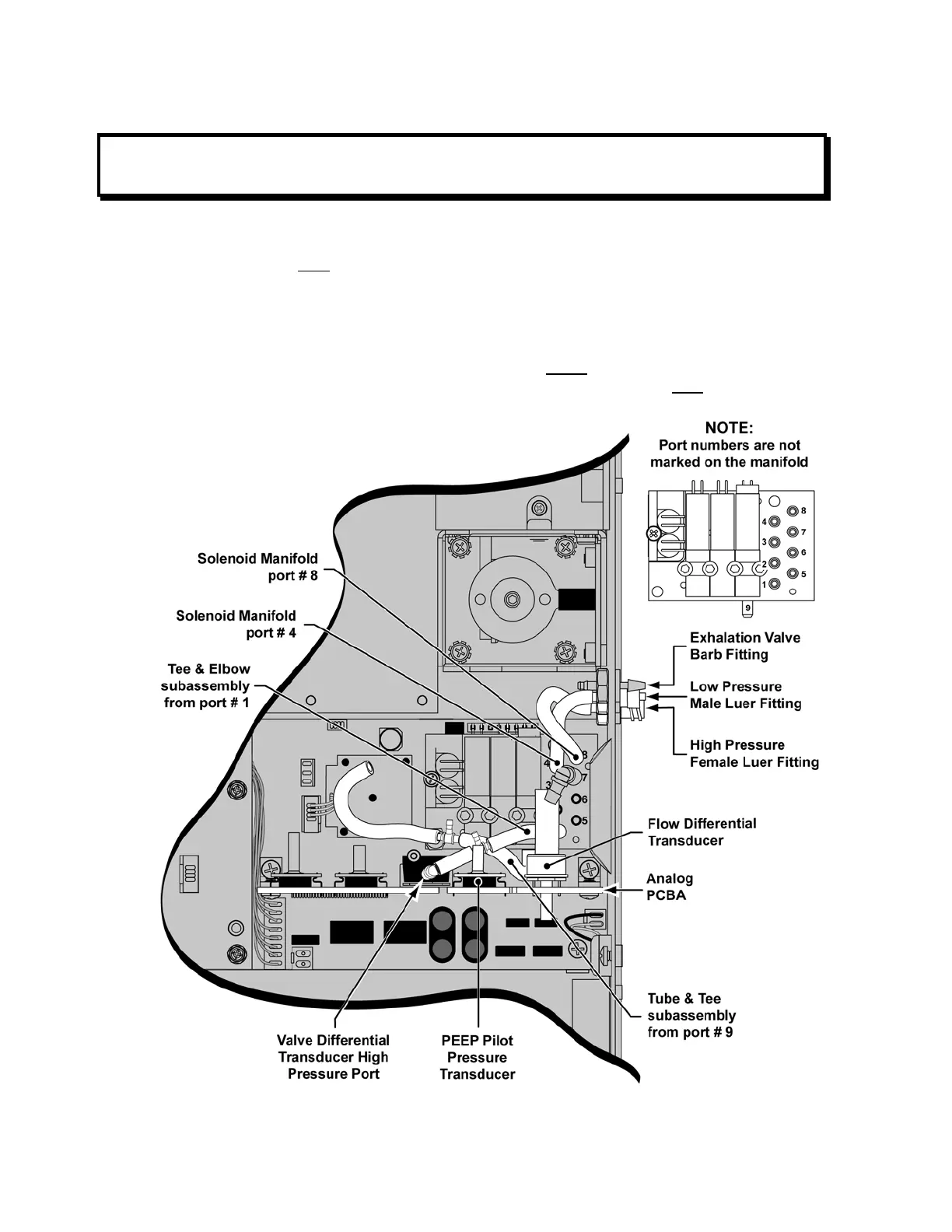 • port # 8 over tubing from port # 4 and onto ventilator side panel High Pressure