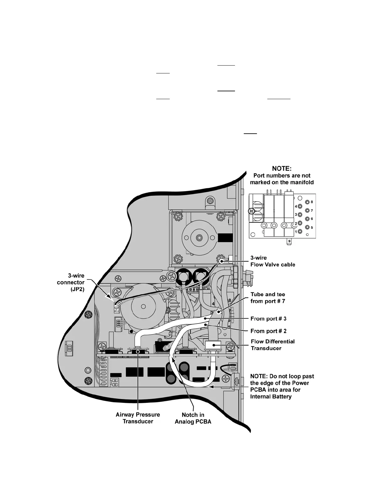 in the Analog PCBA and onto the Flow Differential Transducer port, as shown.
