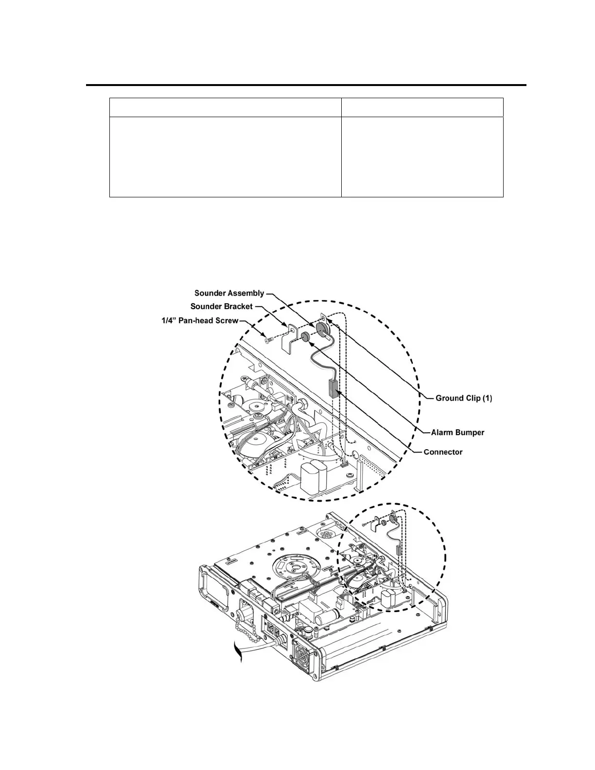 3) Remove the 1/4” pan-head screw from the sounder bracket, as shown.