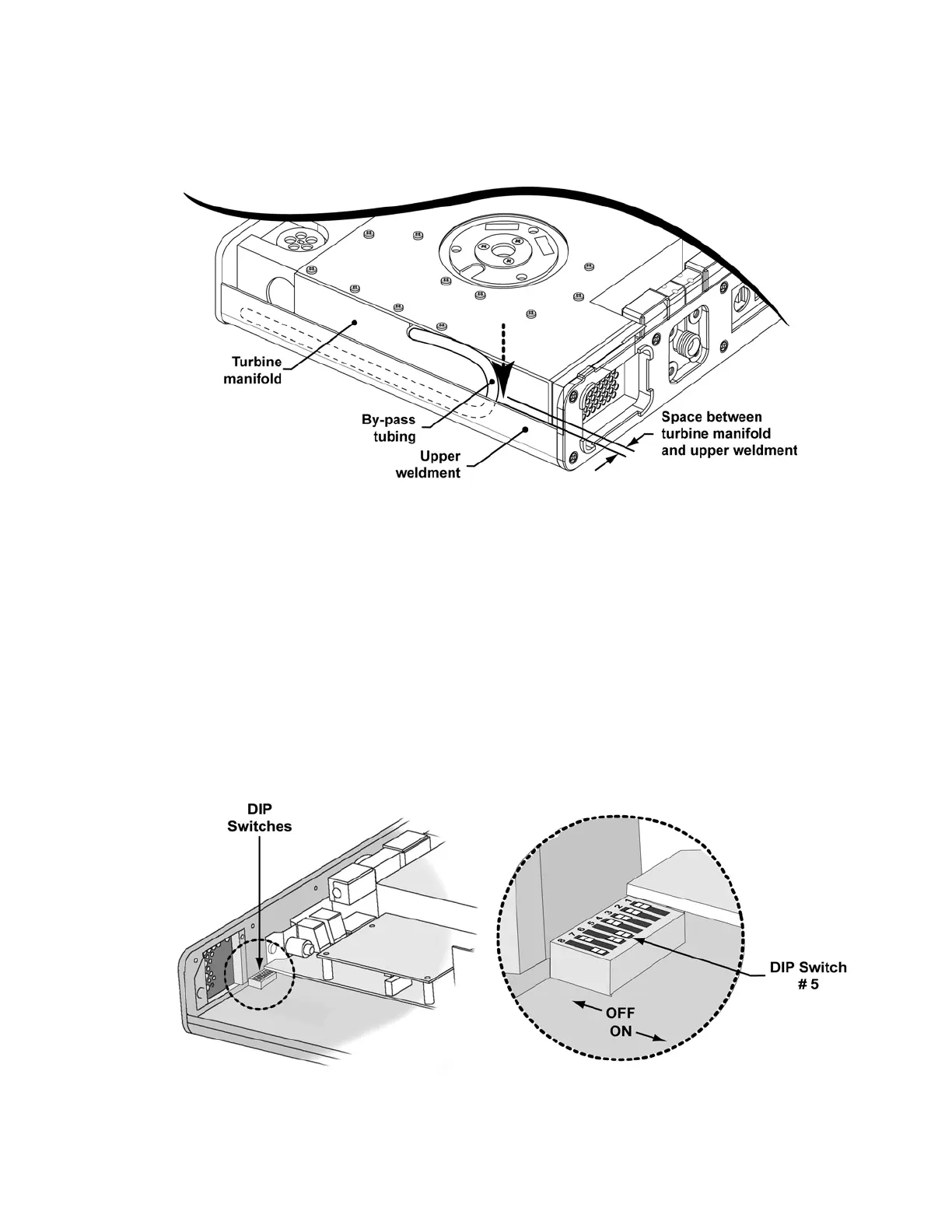 8) Loop the bypass tubing down into the space between the manifold and the bottom edge