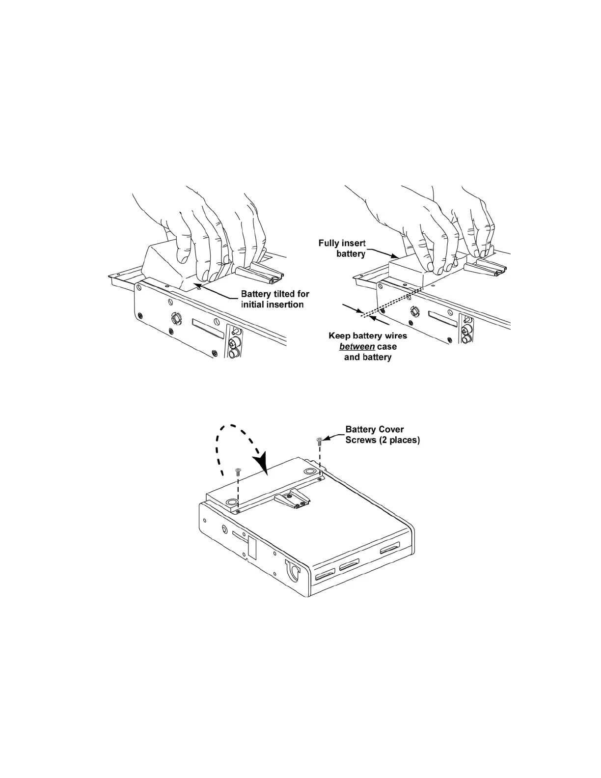 • keep the battery connector wires between the case and the side of the