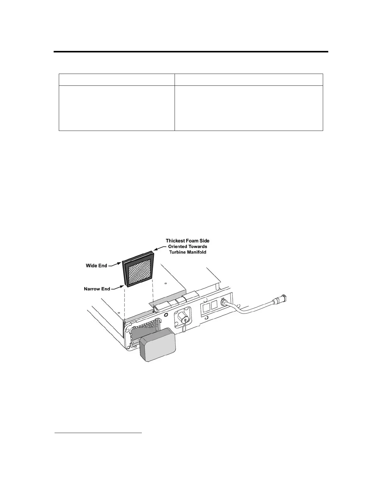 5) Orient the filter as shown (with the thickest foam side facing in, toward the turbine manifold),