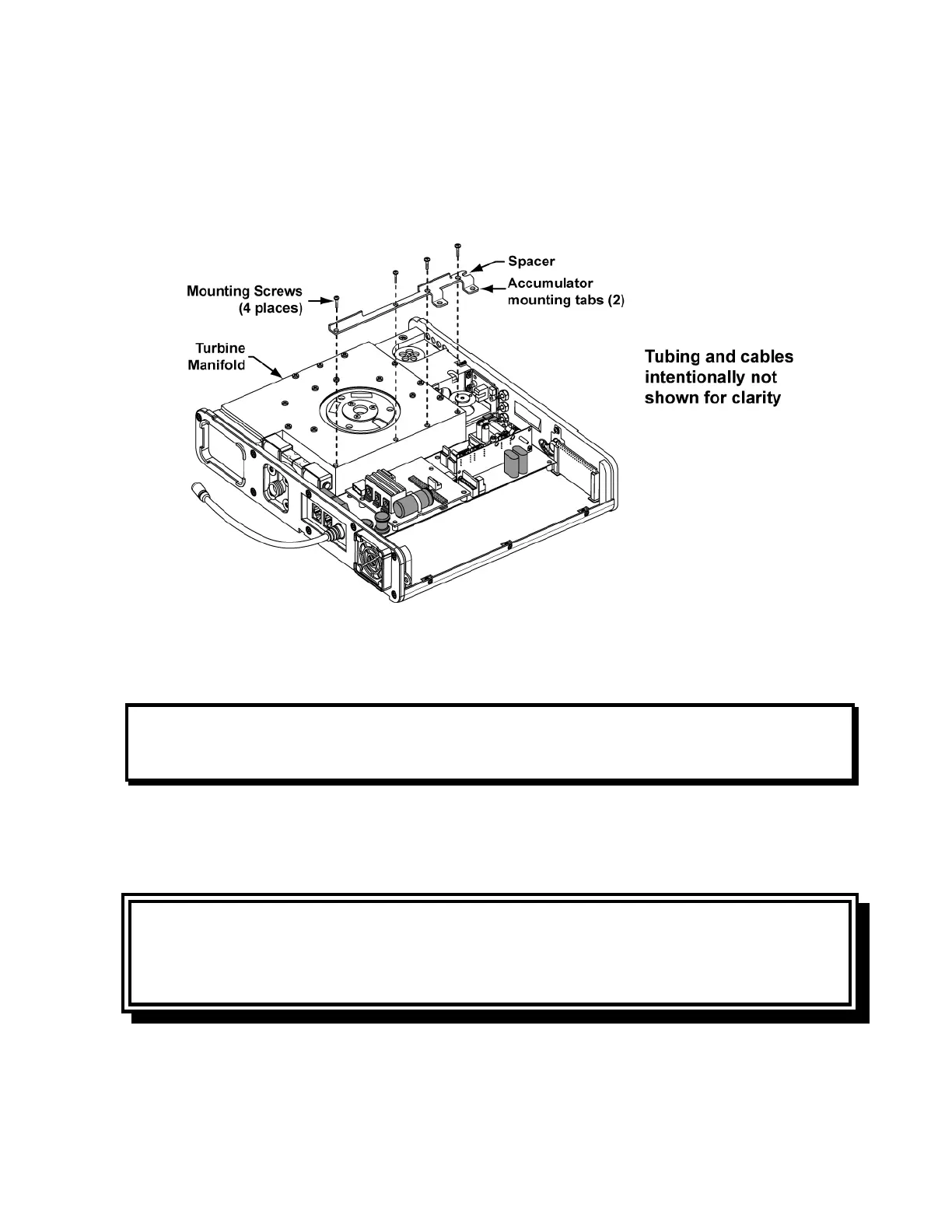 9) Remove the two (2) screws that secure the accumulator to the turbine manifold spacer,