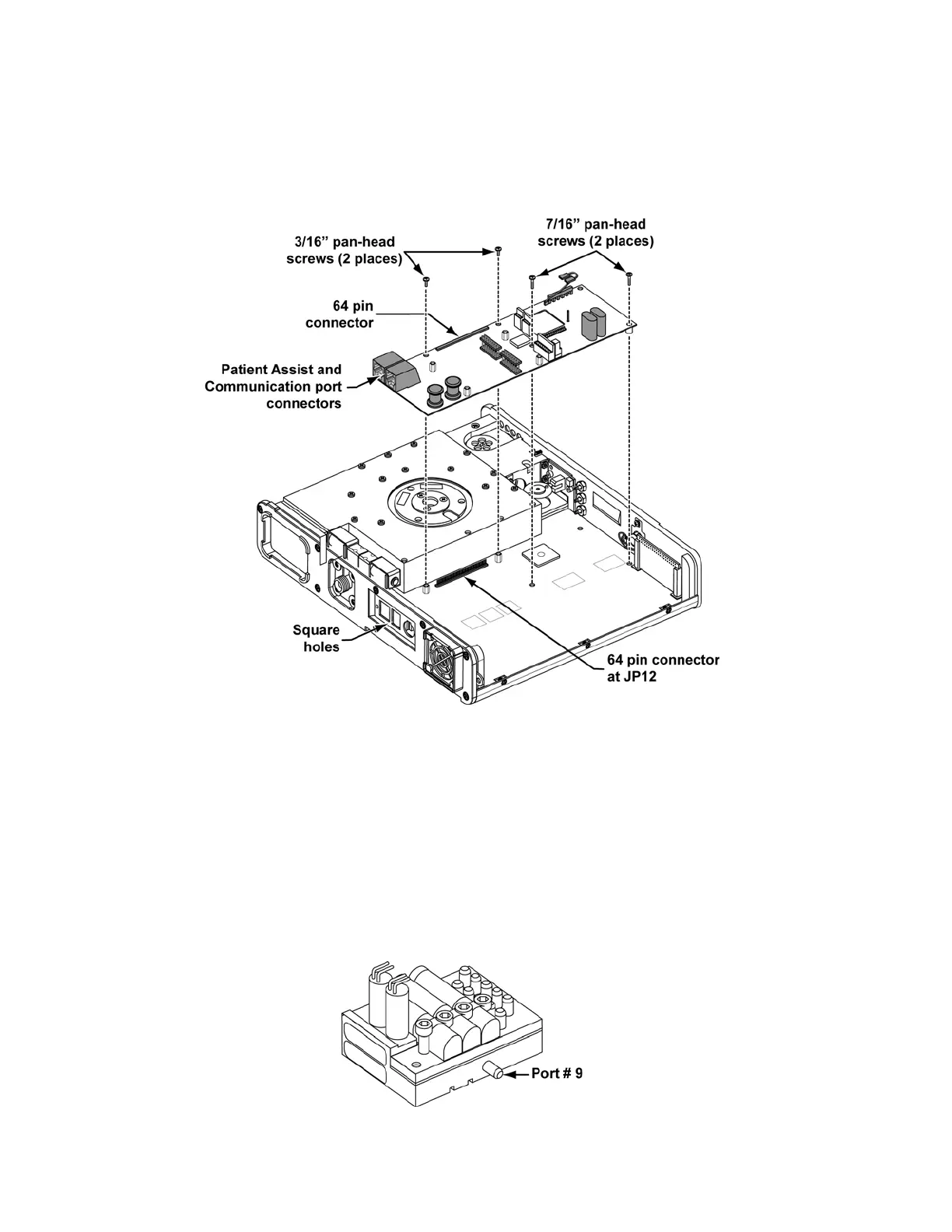 assist and comm. port) with the two square holes in the side of the upper weldment and