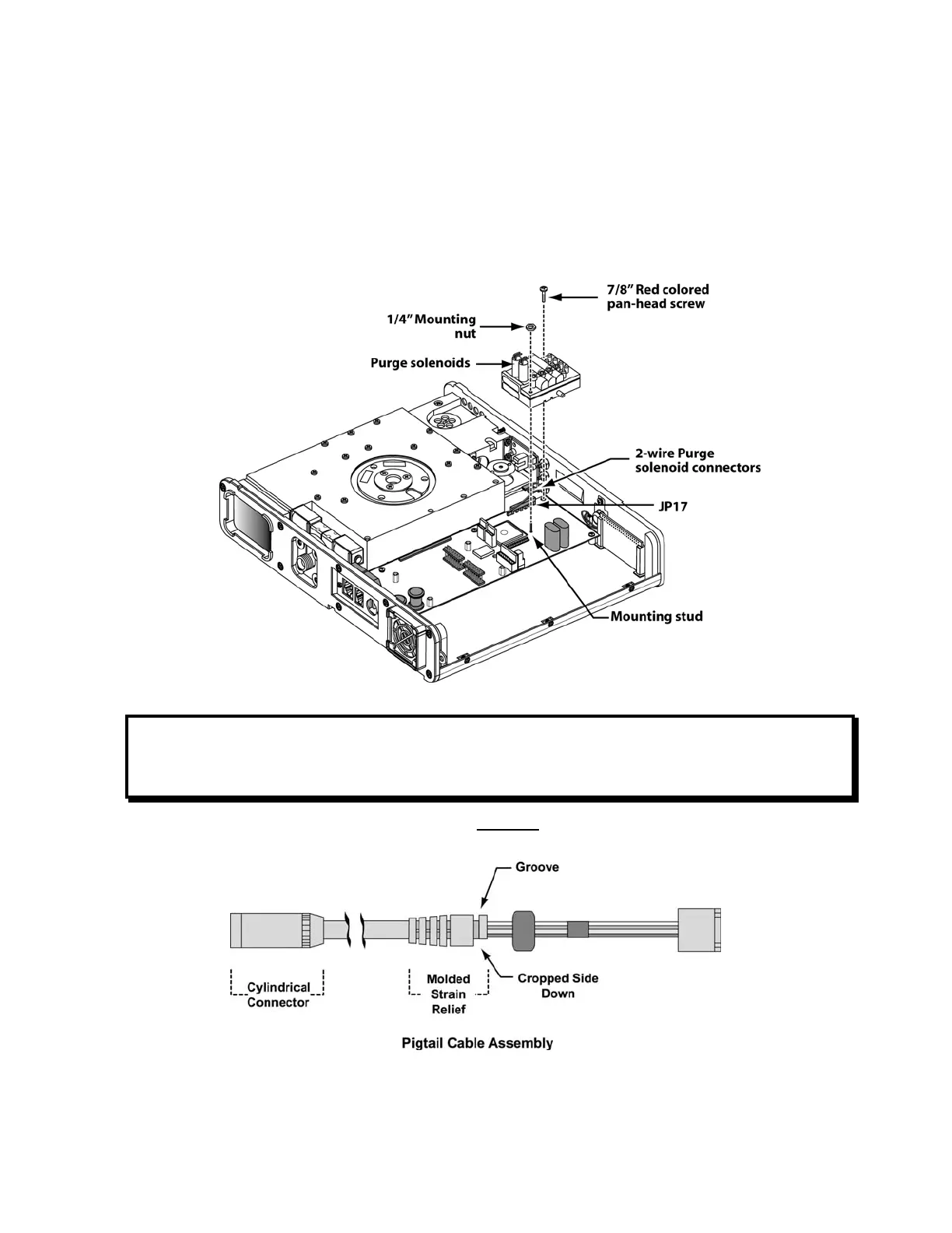 9) Orient the pigtail cable assembly so the grooved side of the molded strain relief is facing