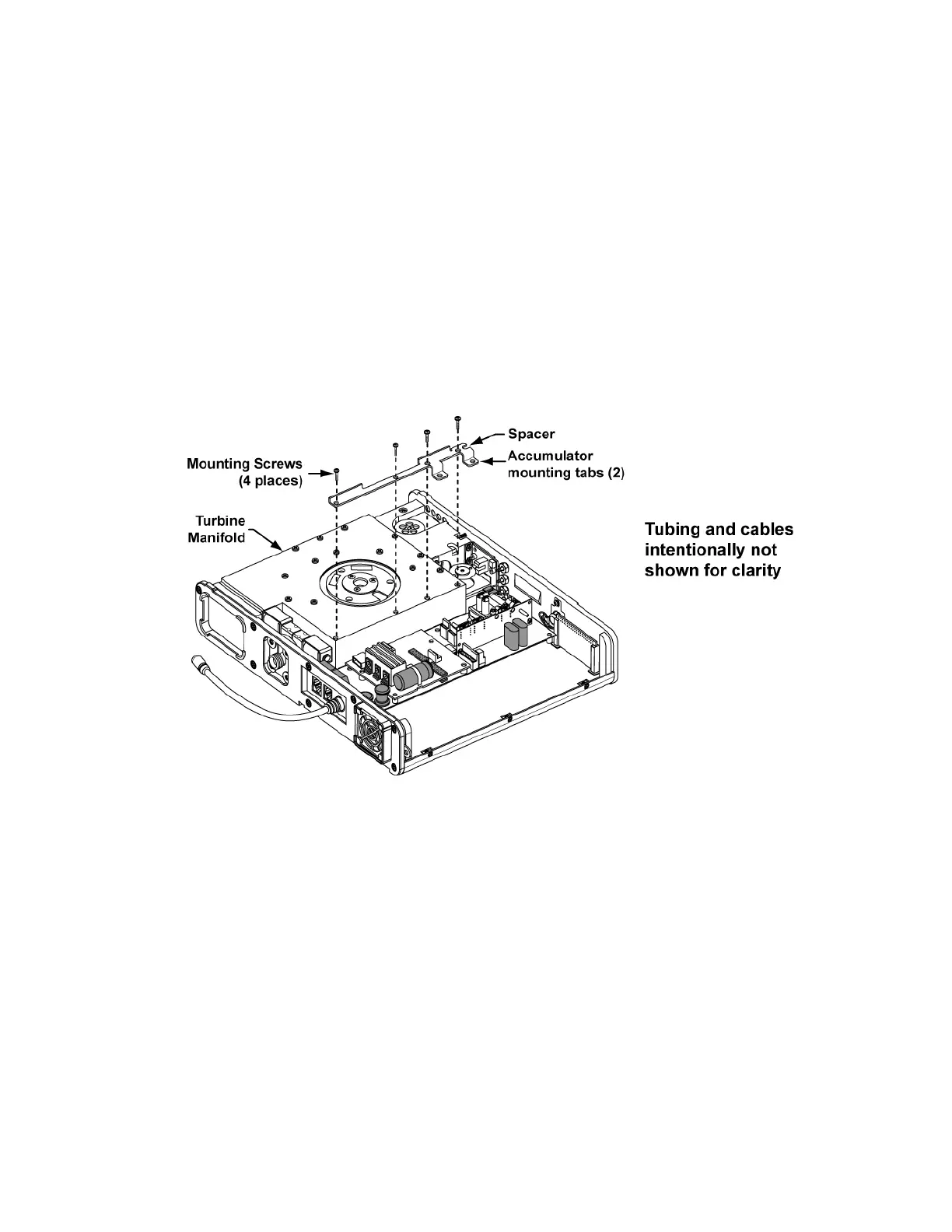 25) Reattach the accumulator to the turbine manifold spacer using the two (2) 7/16” pan