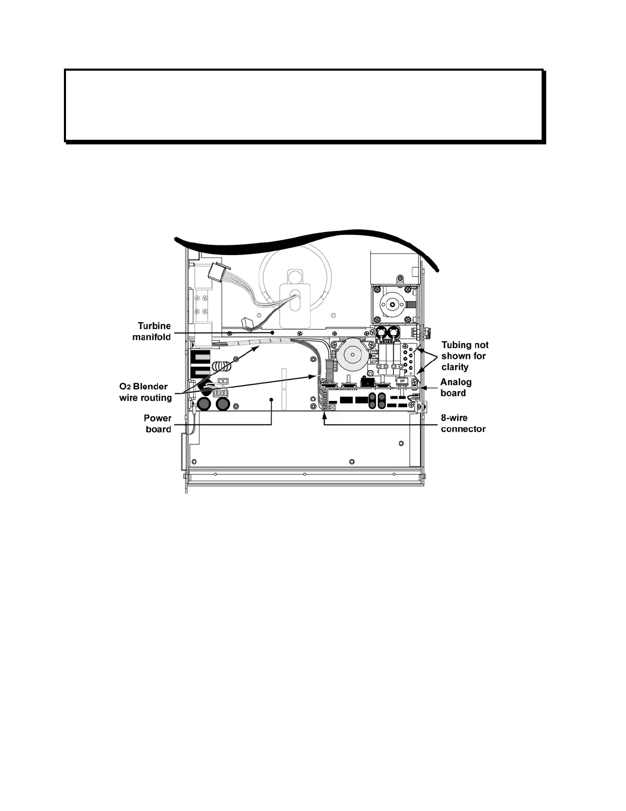 6) Tuck the wrapped wires and oxygen tube down along the side of the turbine manifold,