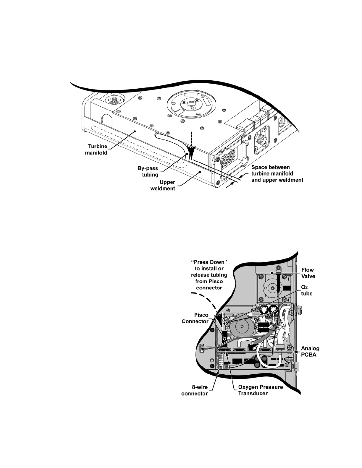 turbine manifold. The tubing should be looped into the space between the bottom of the