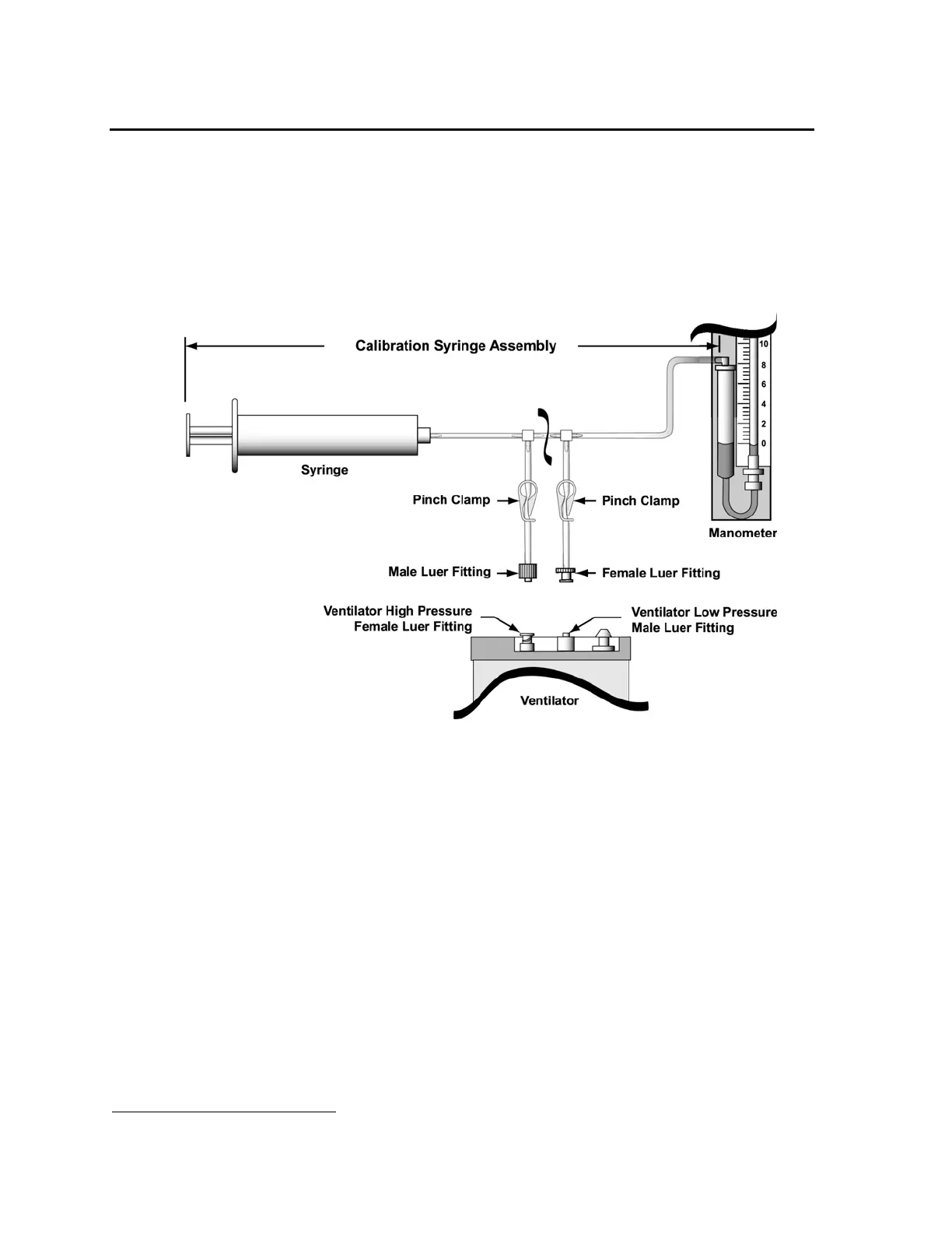 • Syringe with a T-connection to a test lung or other large-compliance reservoir and a