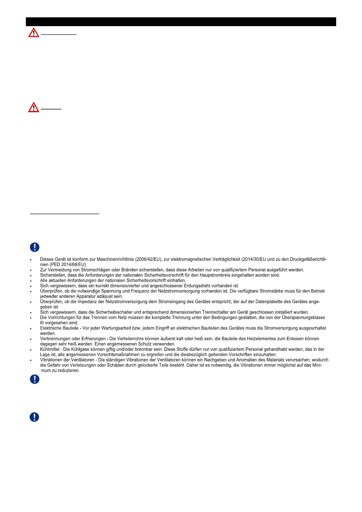 • Kühlmittel - Die Kühlgase können giftig und/oder brennbar sein. Diese Stoffe dürfen nur von qualifiziertem Personal gehandhabt wer-