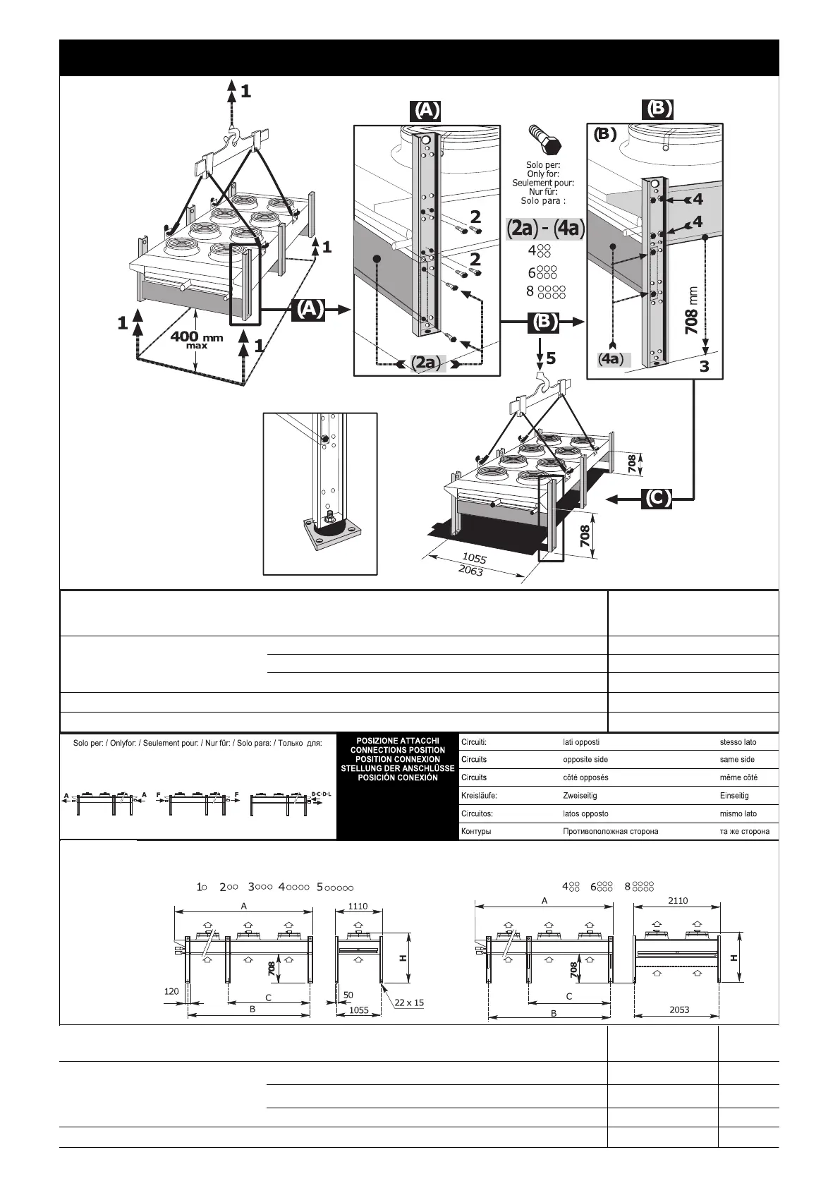 INSTALLAZIONE ORIZZONTALE / HORIZONTAL INSTALLATION / INSTALLATION HORIZONTAL / AUFSTELLUNG HORIZONTAL