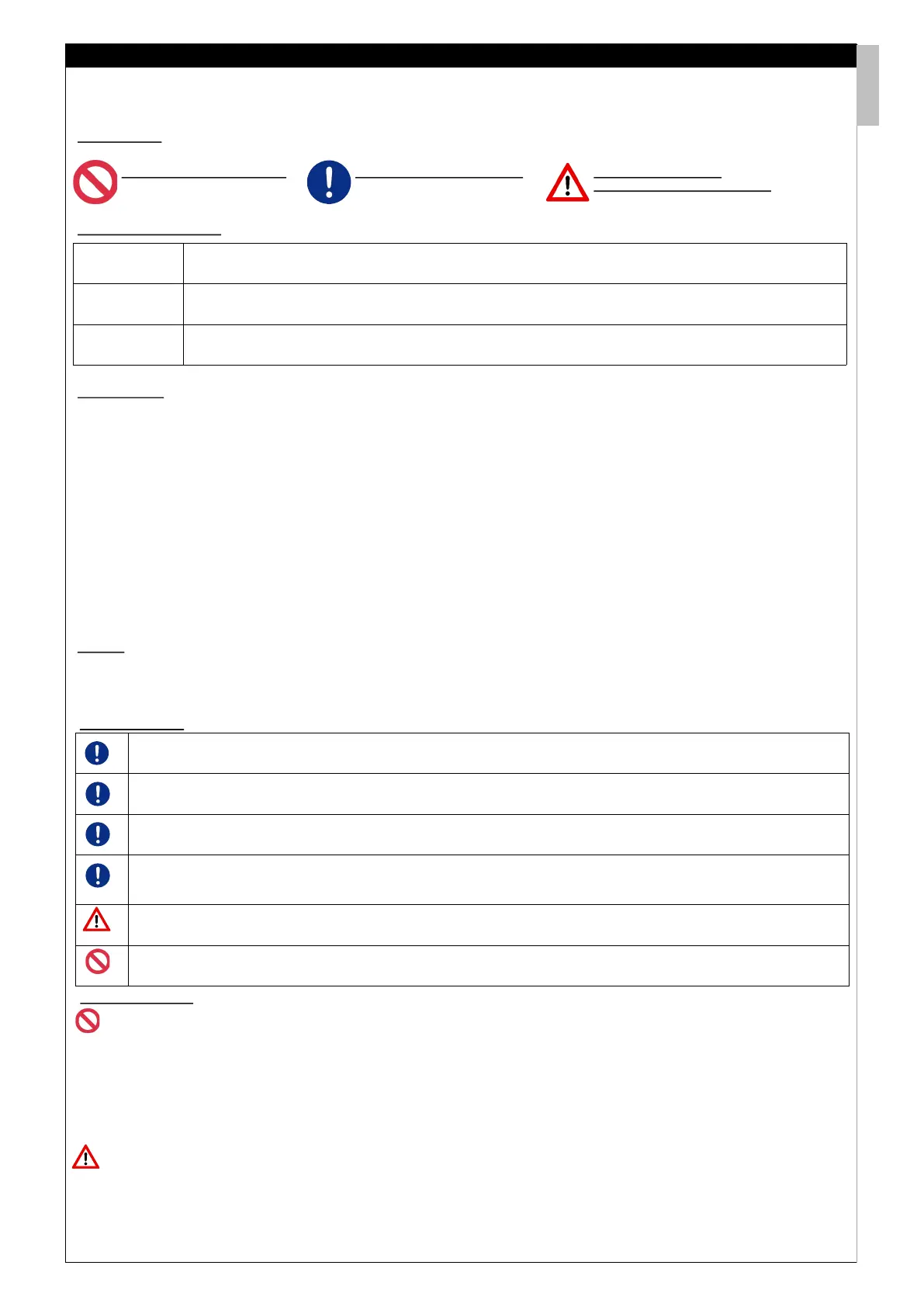 indicates prohibited actions indicates mandatory actions indicates precautions