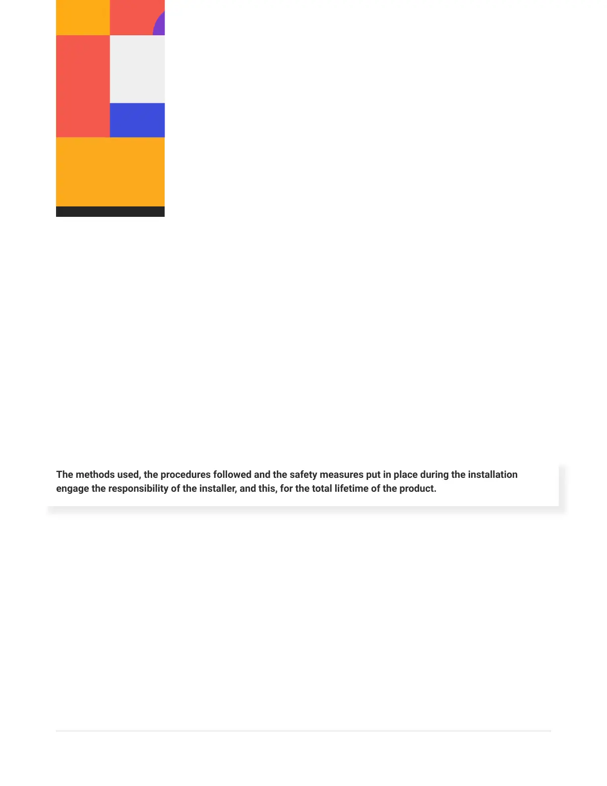engage the responsibility of the installer, and this, for the total lifetime of the product.