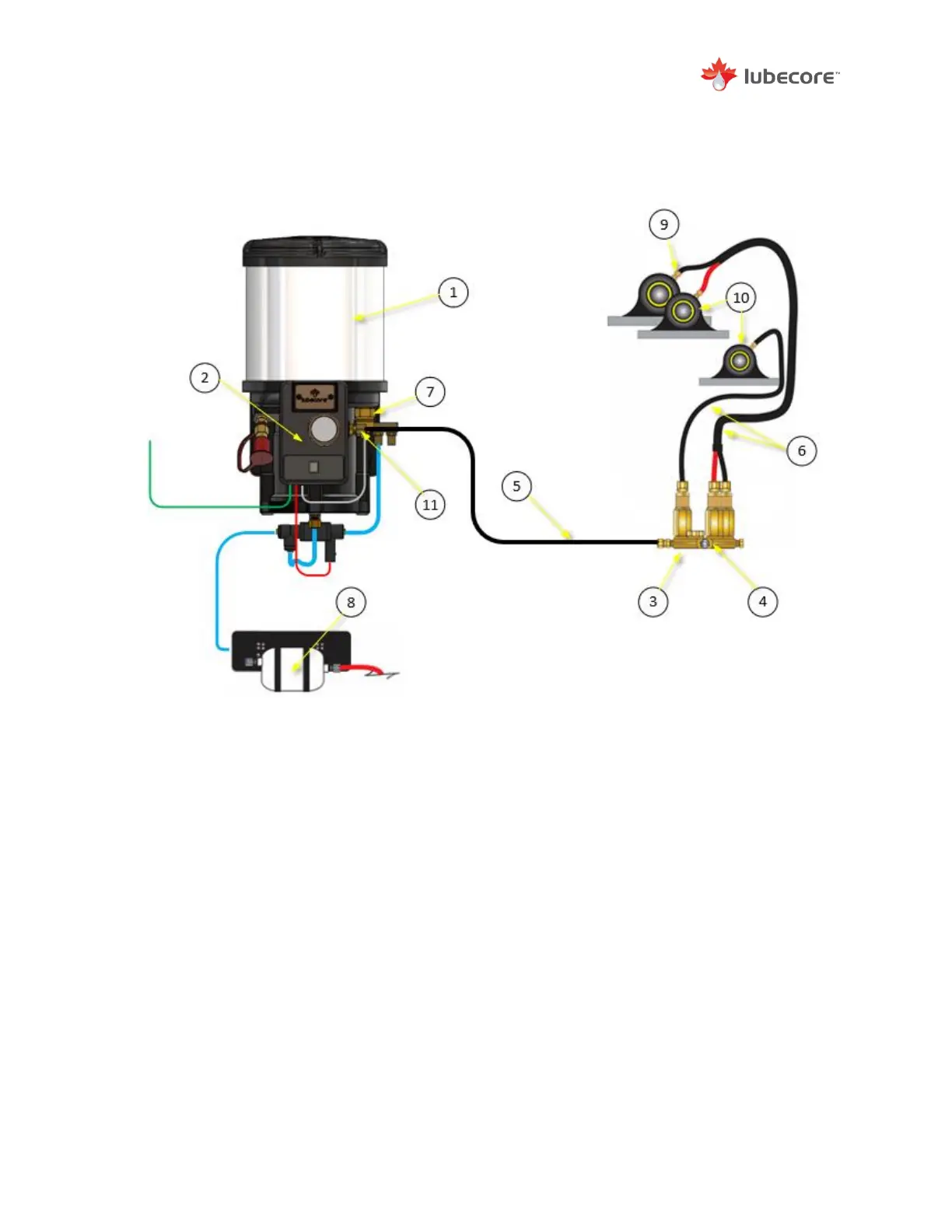 Figure 31 Standard Lubecore Automated Lubrication System Layout for a Trailer with Pump