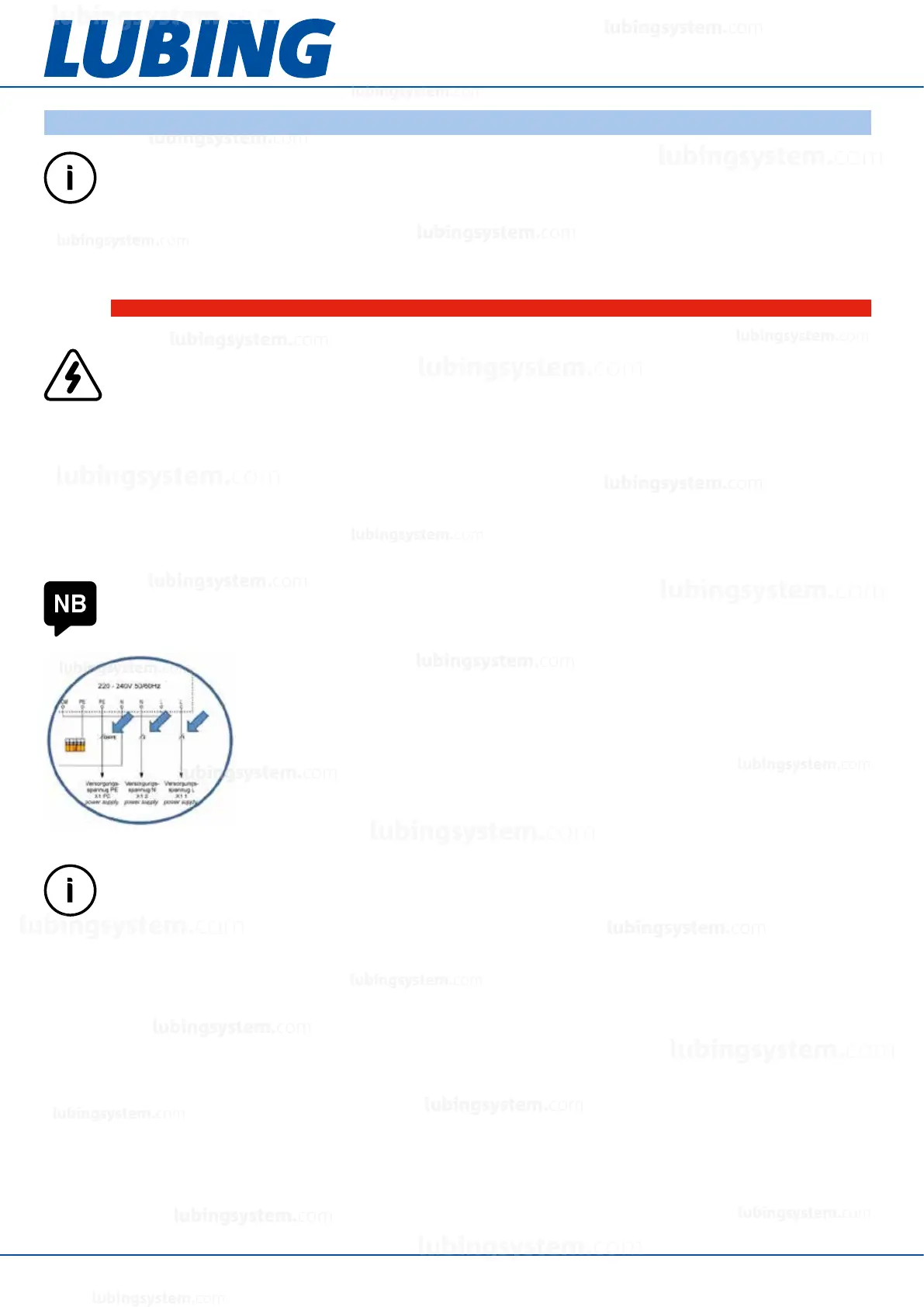 The LUBING Touch Controller should be installed in a dry, clean and easily accessible location near the pump