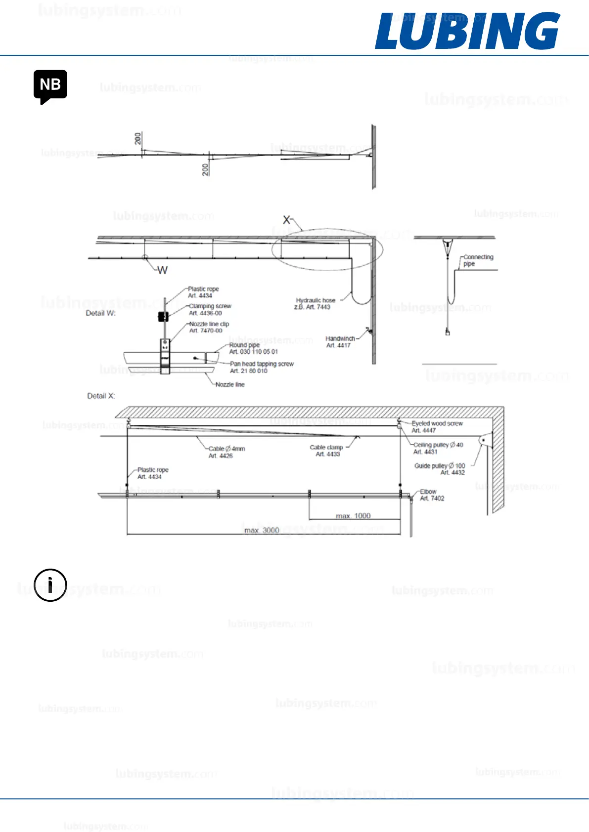 and round pipe. At least 2 holders per 6m nozzle line must be suspended from the ceiling with the suspension line