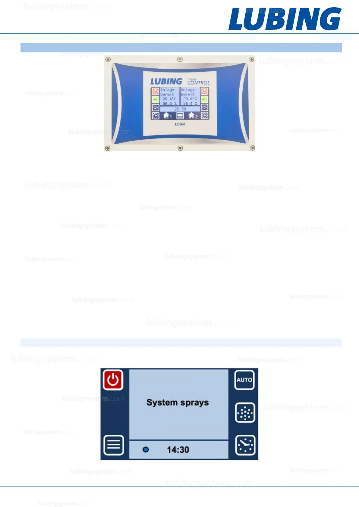 The Touch Controller is designed to control the LUBING Top climate system. The manufacturer accepts no liability