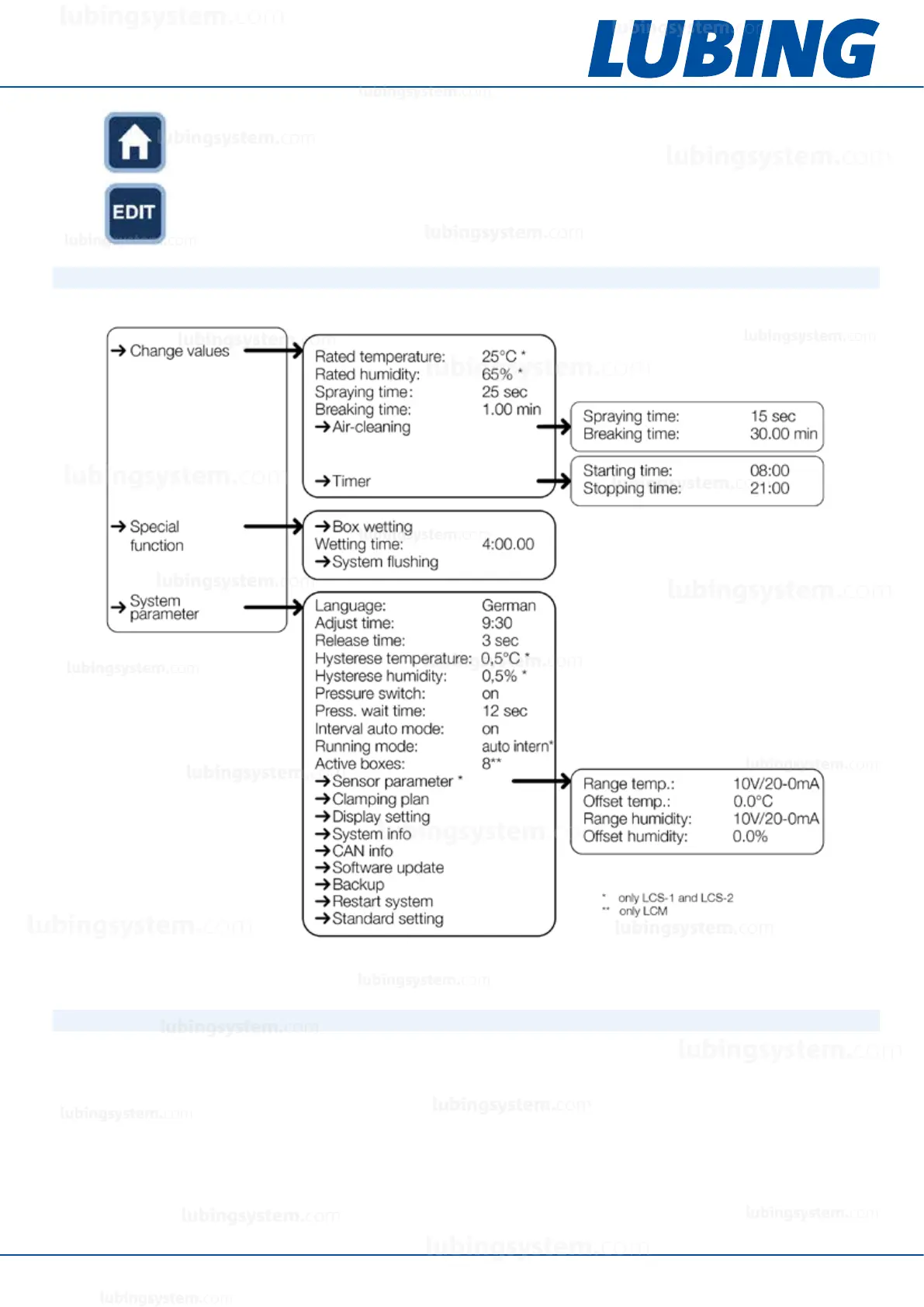 3. after selecting the menu item (EDIT), the desired language can be set with the “+” and “-” keys.